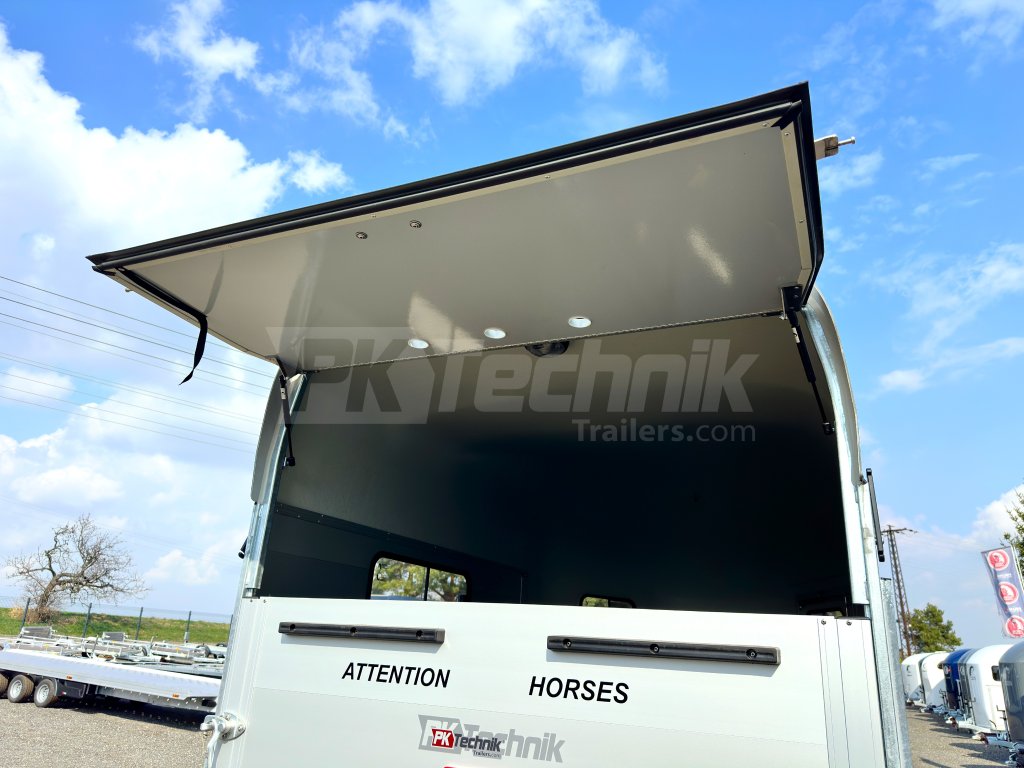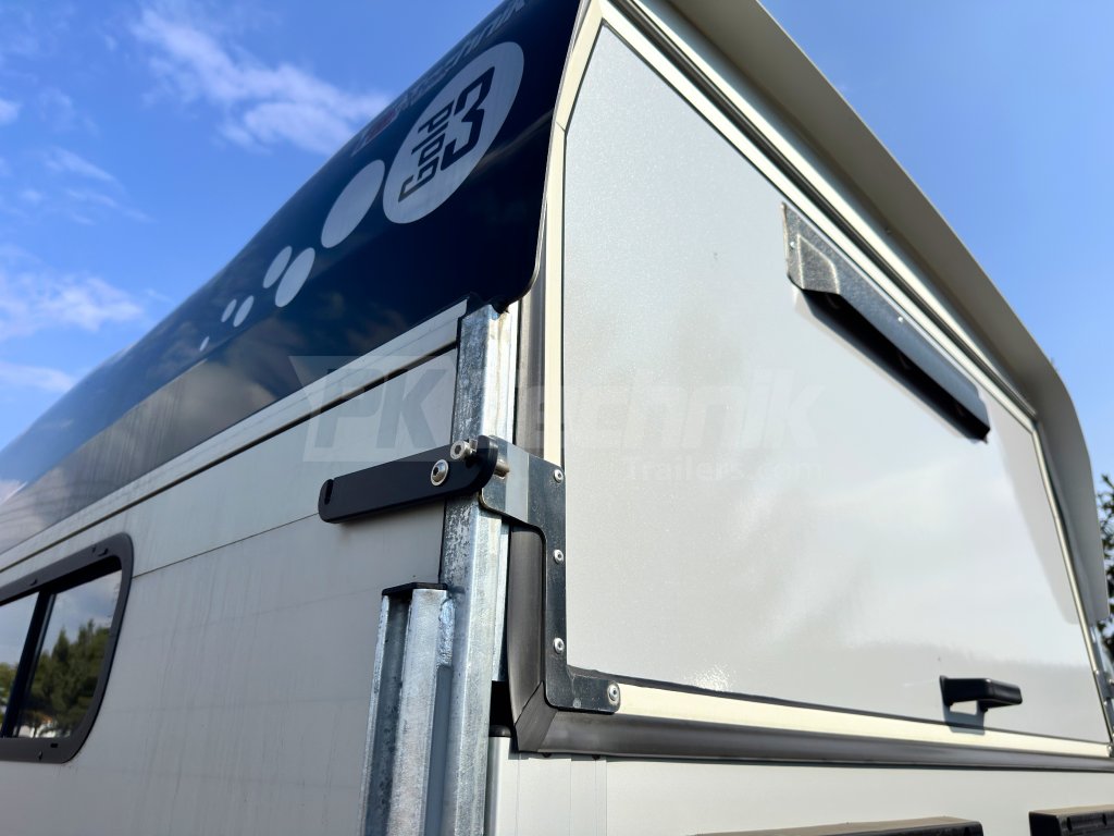 Výklopná dvířka nad zadní rampu včetně plynových vzpěr a ventilace pro uzavření přívěsu (namísto Airtech rolovací plachty)