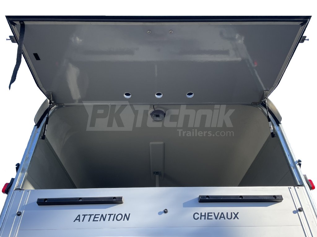 Výklopná dvířka nad zadní rampu včetně plynových vzpěr a ventilace pro uzavření přívěsu (namísto Airtech rolovací plachty)