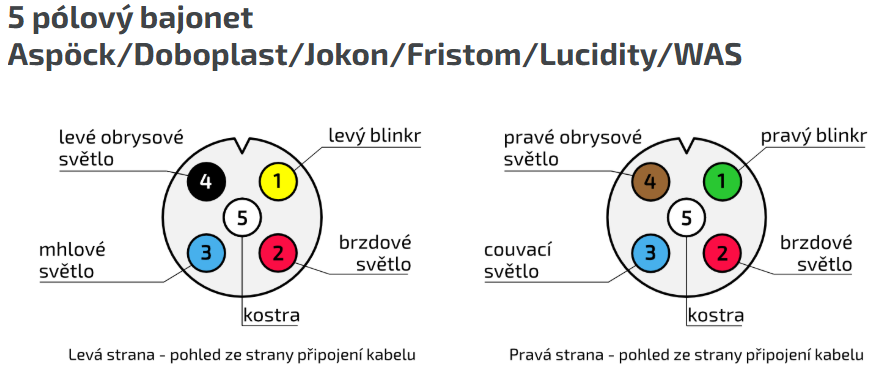 - Provedení se dvěma vývody je primárně určené pro přívěsy, které jsou osazeny předními či bočními obrysovými světly.
