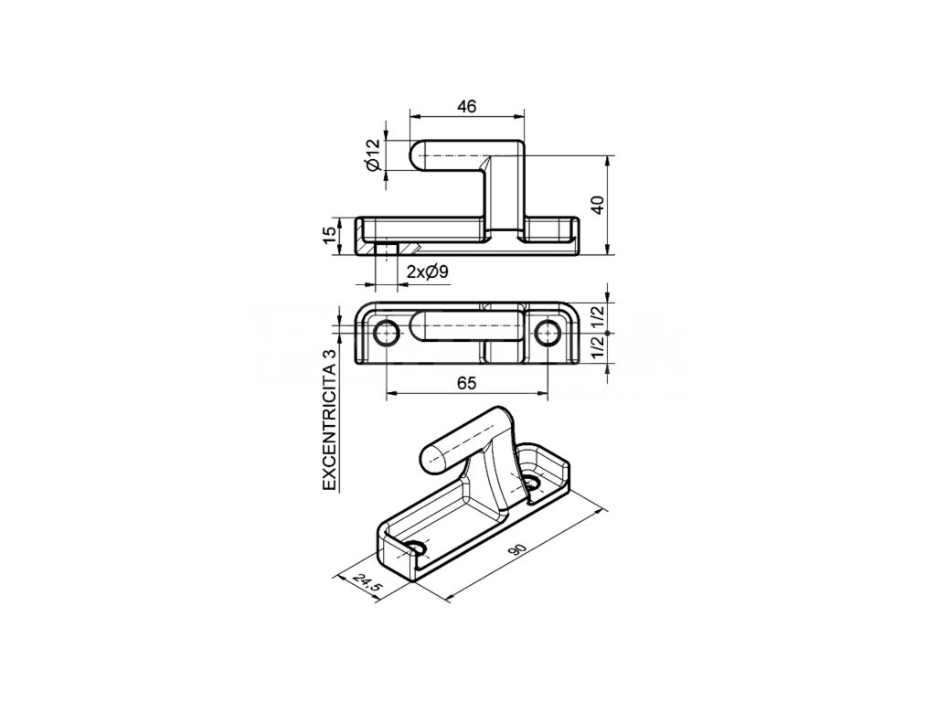 - Rozteč montážních otvorů pro bočnici: 65 mm