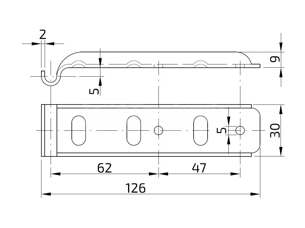 Protikus k přeskám BV/10/1 a BV/10/2, rovný, vhodný k našroubování na bočnici bez zvýšeného lemování.