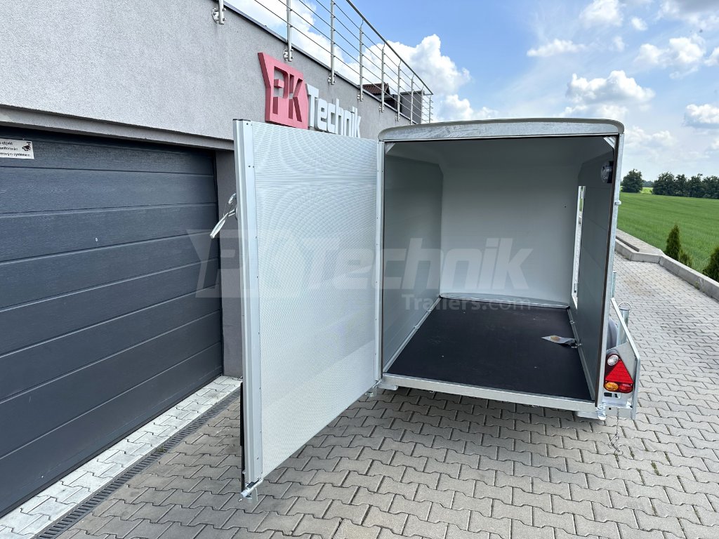 Tento bržděný přívěs má bočnice z dutých hliníkových profilů (ALU), do kterých lze připevnit nejrůznější příslušenství dle potřeb každého uživatele. Standardní výbava zahrnuje také pravé boční dveře a nápravy a brzdovou soustavu KNOTT. Díky tomu může nabídnout nejlepší poměr cena/výkon.