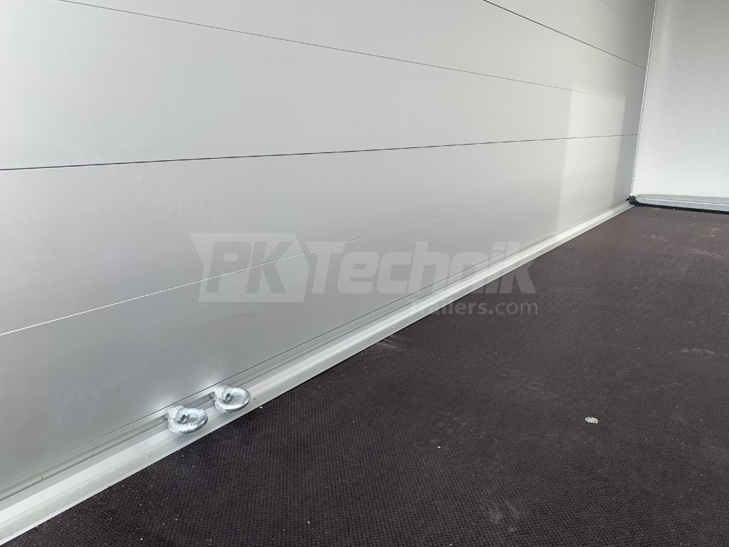 Laminátová monobloková karoserie s integrovanými výztuhami odolnými proti deformacím zajišťuje vysokou tuhost přívěsu, zatímco protiskluzová podlaha z voděodolné přívěsové překližky je vybavena v základu 4 kotevními oky.