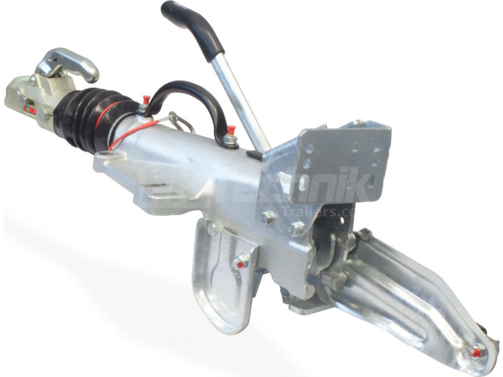 Die Bremse wird komplett mit einer Kugelkupplung K35-C, einem Sicherheitskabel und einer Halterung für die Montage der Stützradhalterung oder die direkte Montage des automatischen Stützrades geliefert.