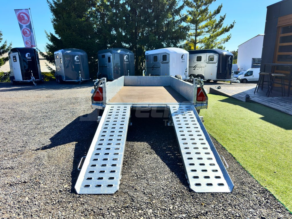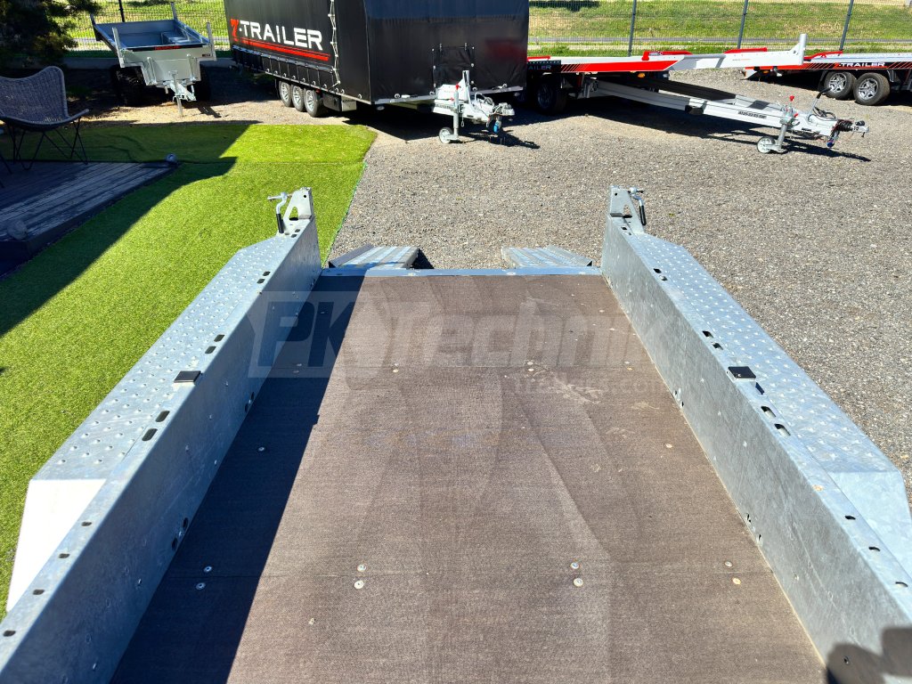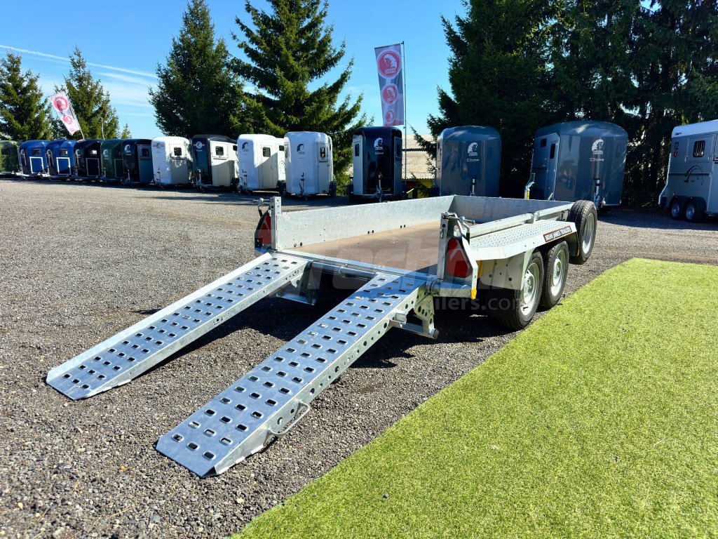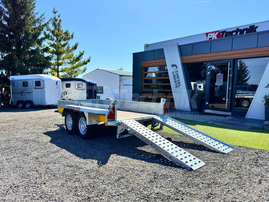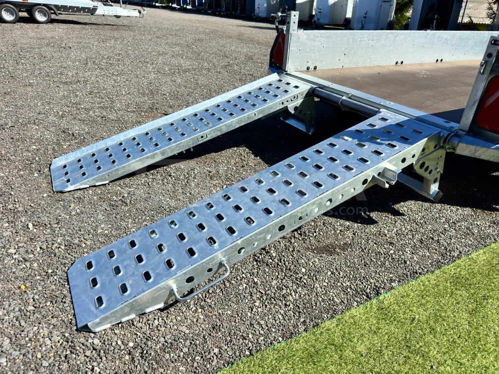 Der Anhänger ist in der Lage, schwere Maschinen zu transportieren, was seine Vielseitigkeit und Effizienz in einer Vielzahl von Anwendungen gewährleistet. Er ist aus hochwertigen Materialien gefertigt, die eine lange Lebensdauer und Verschleißfestigkeit garantieren. Er ermöglicht ein einfaches Be- und Entladen dank seines praktischen Designs mit klappbaren Rampen und einem niedrigen Boden. Sicherheitsmerkmale wie robuste Schließsysteme schützen die Ladung während des Transports.