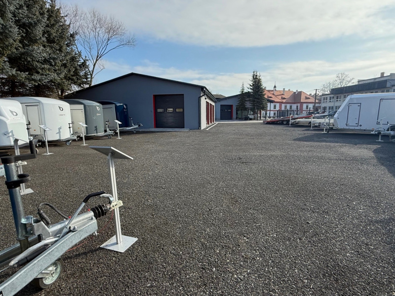 Wir haben unseren ersten Anhängerverkaufsbereich in der Nähe der Hauptstadt Prag, im Dorf Hřebeč u Kladno, errichtet. Das Gebiet liegt 10 km vom Prager Flughafen Ruzyně entfernt, umfasst eine Fläche von fast 5.000 m² und verfügt über einen Bestand von 150 Anhängern, die zur sofortigen Abholung bereitstehen.