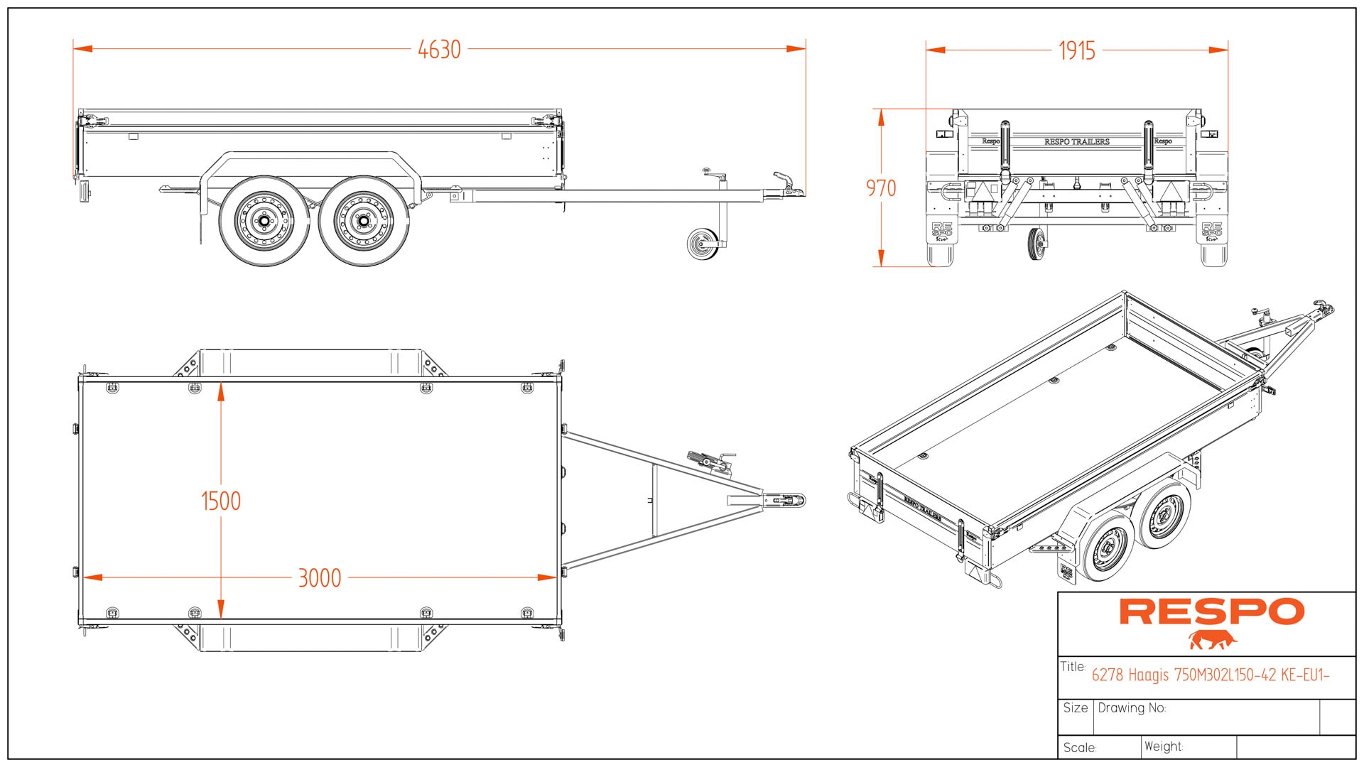 Der Lastenanhänger RESPO 750M302L 150 zeichnet sich durch seinen extrem starken und langlebigen geschweißten Stahlrahmen aus.