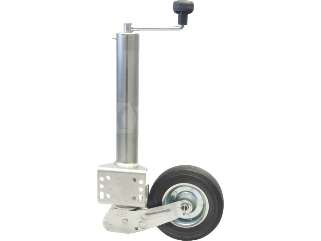 When handling the trailer, the direction of travel can be easily changed, the extendable part of the support wheel rotates around its axis when extended. Wheel width: 60 mm.