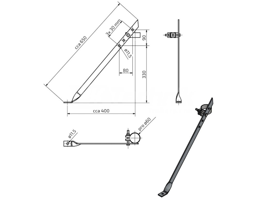 The strut serves as additional reinforcement for the support wheels, which are subjected to higher loads.
