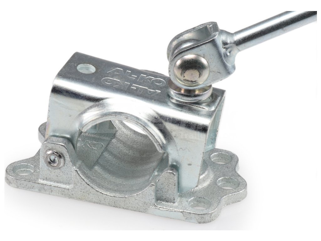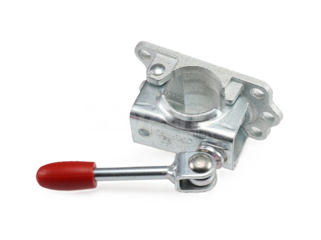 Cast iron trailer wheel support bracket. Manufacturer AL-KO, for support wheel with tube diameter 48 mm. A great advantage of the holder is the folding handle, which makes handling in places with less space easier. It is designed for more demanding situations where there is more stress on the support wheel. Ideal stability is the attachment in three to four points, thanks to M10 screws.