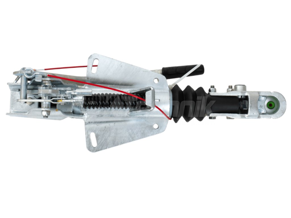 - The new brake is equipped with a handbrake lever with a gas-spring force reservoir. Compared to the original solution with a gas strut and a locking horn, the new type is easier to operate due to the lower force required for manipulation. The absence of a thumb lock allows for a finer dosage of frictional force, which you will appreciate, for example, when hitching a trailer on a slope.