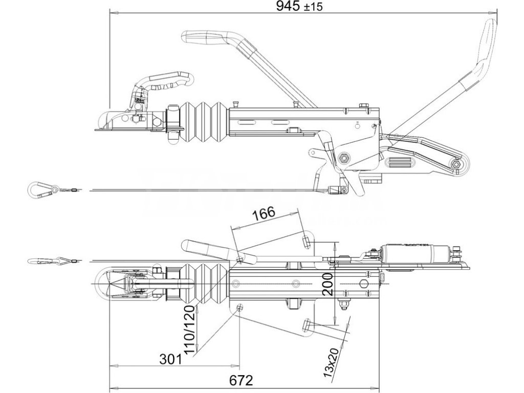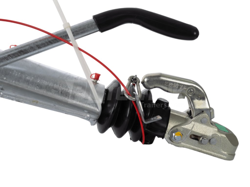 The brake is supplied complete including a tow ball coupling KNOTT K27-A and a safety cable.