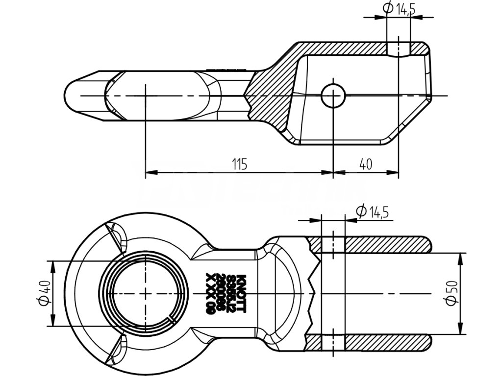 Towing eye DIN 40 mm KNOTT (for 50 mm pipe), drilling 14.5 mm