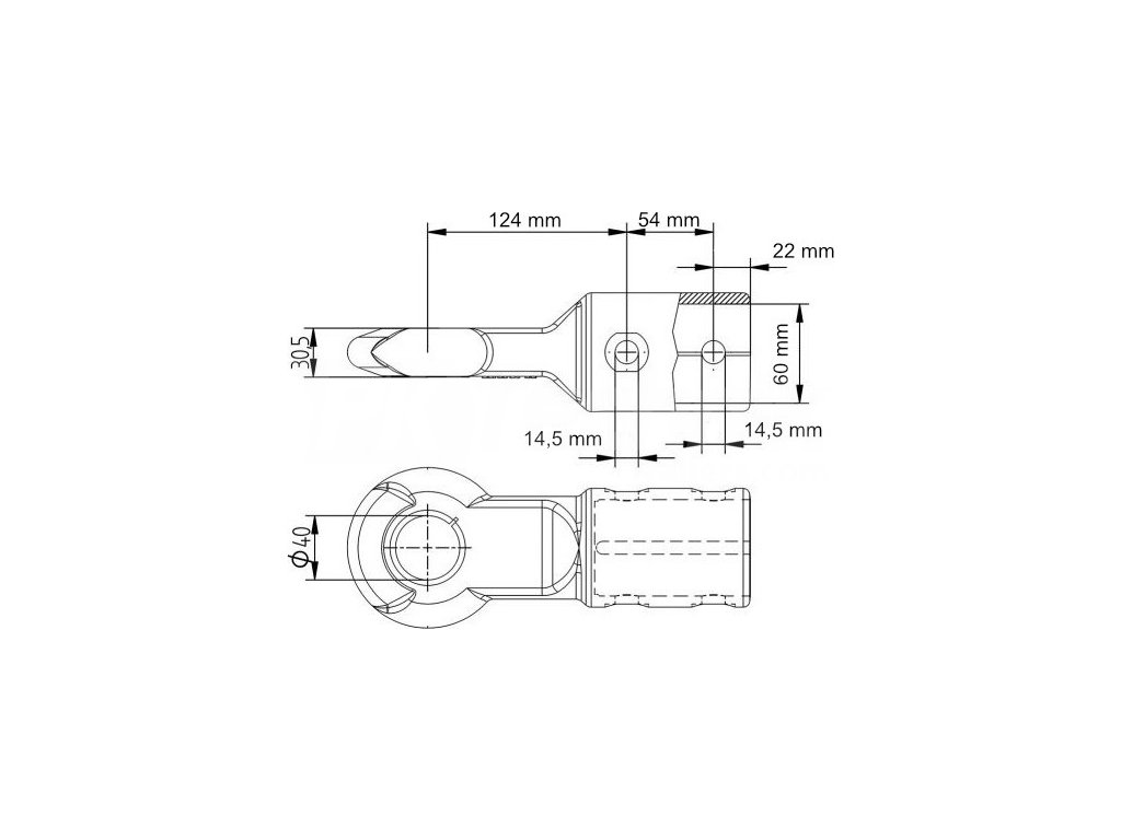 - Mounting 2x screw M14 horizontally, screw pitch 54 mm