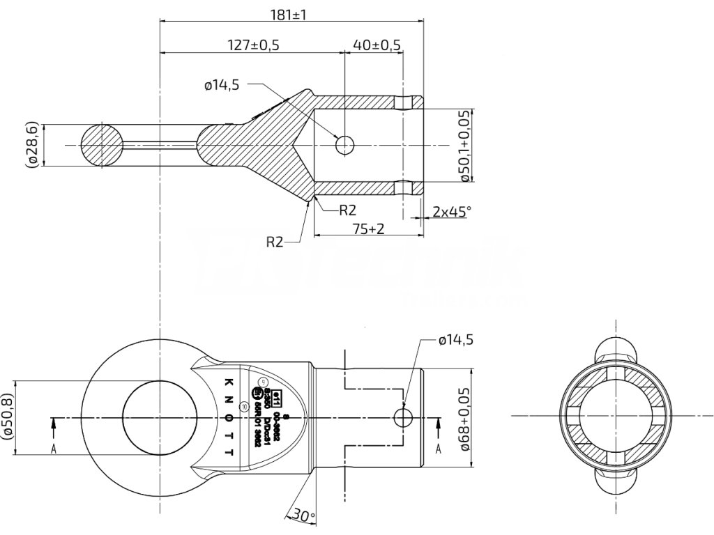 Towing eye for 50 mm pin KNOTT (for KFZ35, for 50 mm tube)
