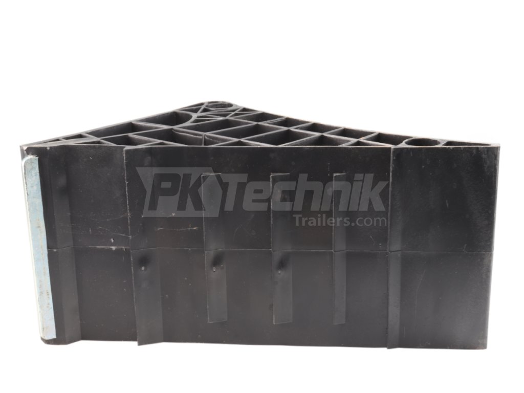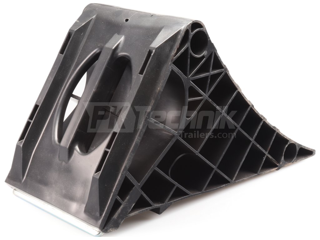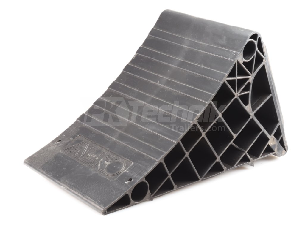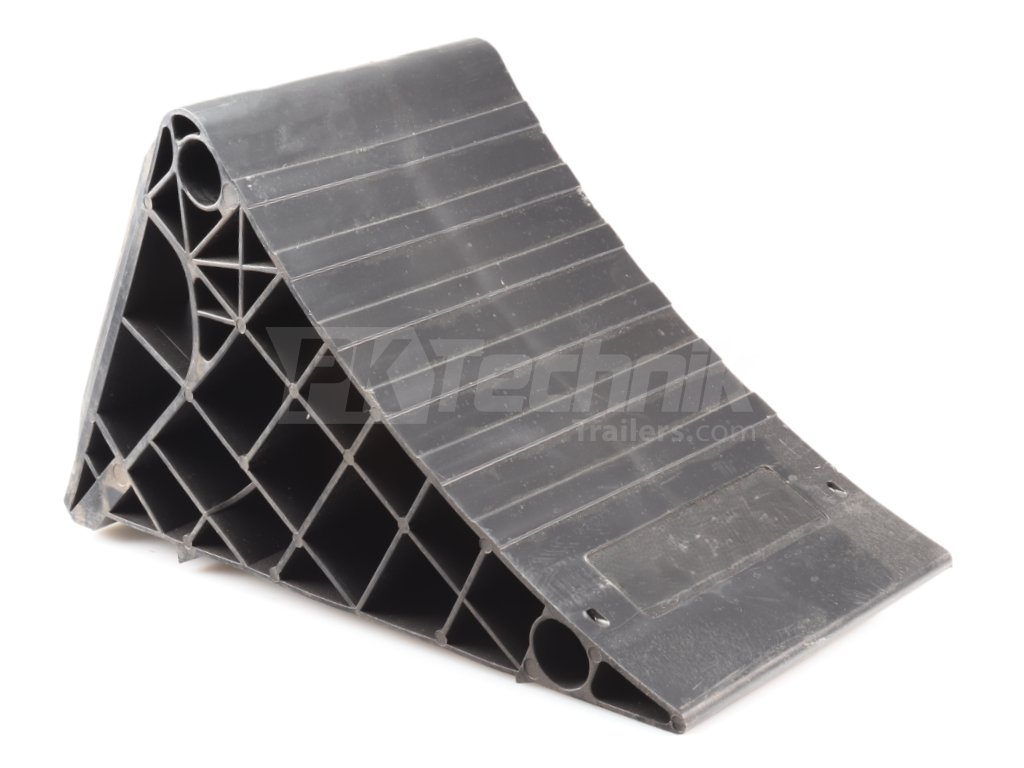 The lightweight plastic wedge is used to secure a trailer or other vehicle against unintentional movement when parking or changing a wheel.