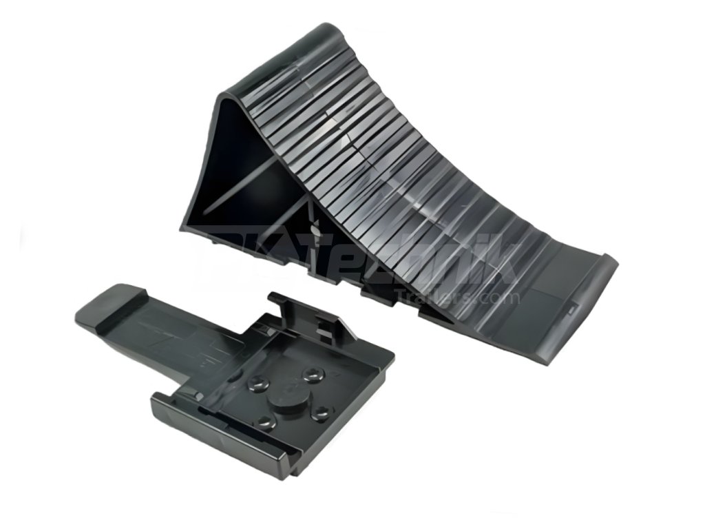 Plastic parking wedge FRISTOM for safely securing a trailer or car when parked. This plastic wedge is supplied on the new Debon and Cheval Liberte trailers.