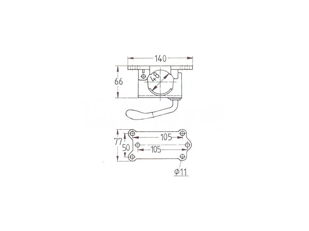 Držák KNOTT k opěrnému kolečku s průměrem trubky 48 mm, rozteč úchytů je 110 mm
