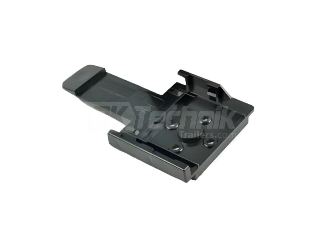 Držák plastového zakládacího klínu FRISTOM slouží k uchycení klínu na rám nebo jiné vhodné místo přívěsu tak, aby byly zakládací klíny vždy při ruce. Vkládání a vyjímání klínu je jednoduché a snadné. Klín stačí nastavit vybráními v základně proti výstupkům na držáku, mírně zatlačit a posunout. Proti vypadnutí je v držáku klín zajištěn pružnou západkou. Stejně snadné je vyndání klínu - stačí odtlačit západku a posunout klín směrem k západce.