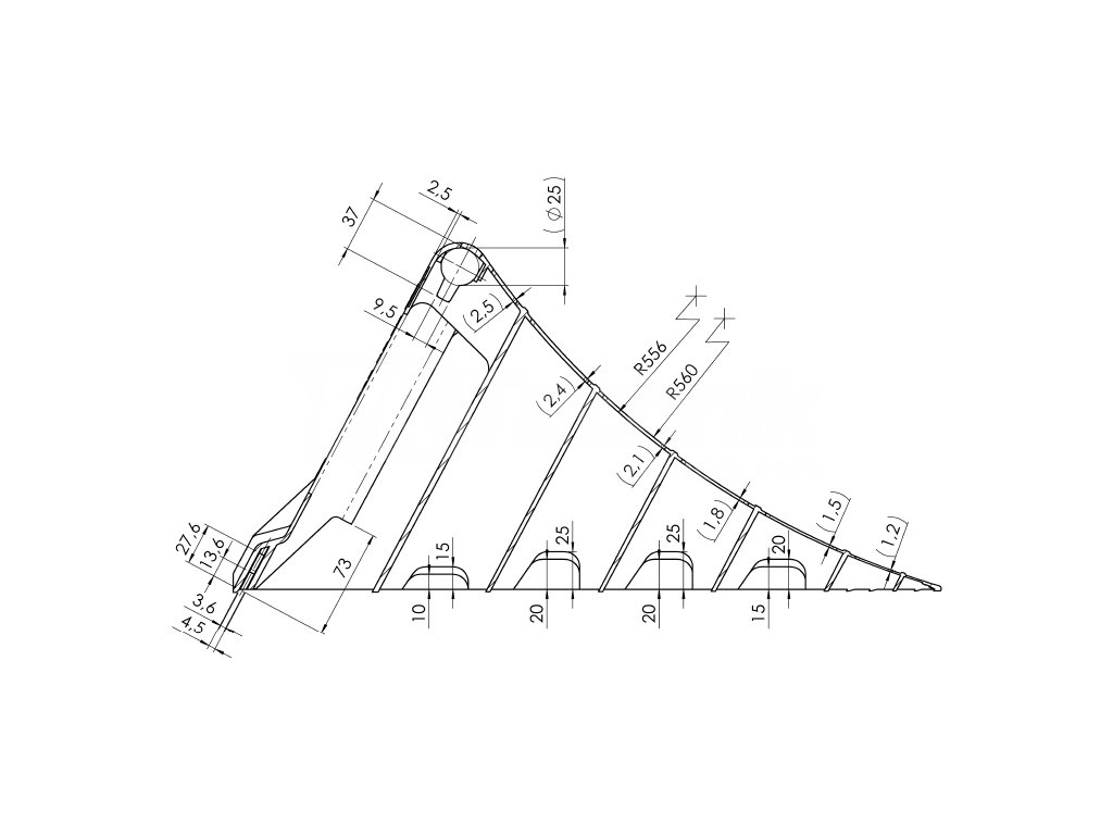 Provedení bez ocelové hrany umožňuje tento klín použít i u vozidel přepravujících nebezpečné náklady, kde jsou klíny s kovovou protiskluzovou