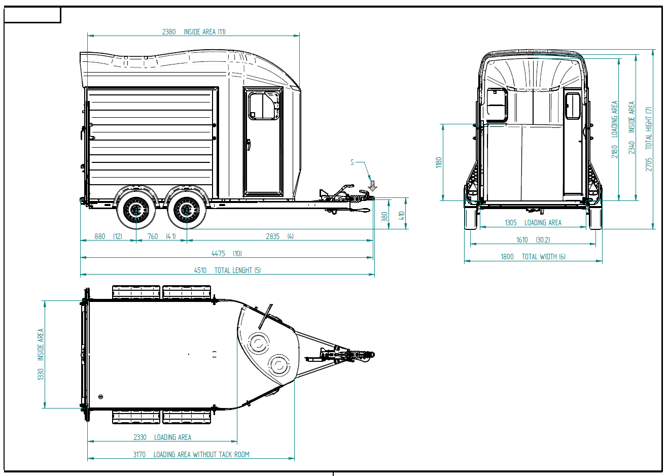 - Vnitřní rozměry: 2380x1330x2340 mm
