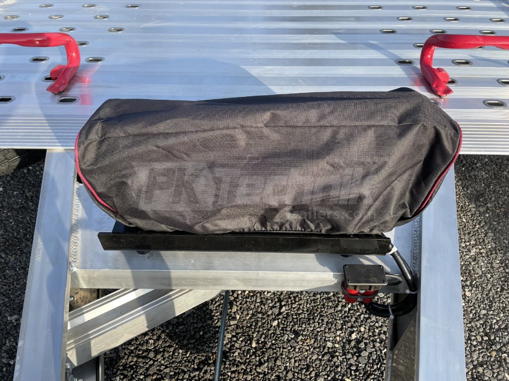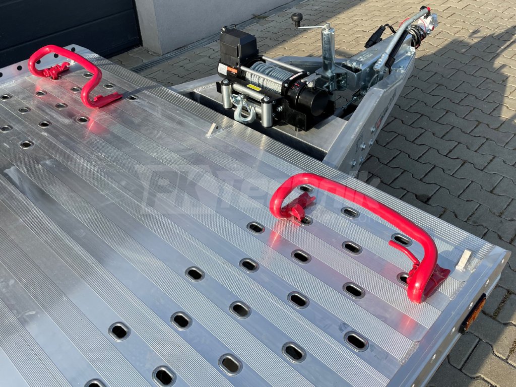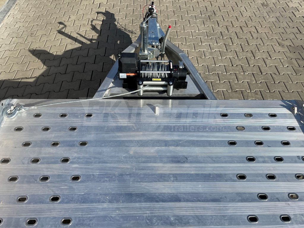 Pro montáž elektrického navijáku je potřeba přidat a přivařit hliníkový robustní nosník na oj přívěsu, do prostoru místo rezervního kola, na kterém je připevněn ocelový držák, který nese samotný naviják s rolnami pro správné navíjení lana. Rezervní kolo je umístěno pod ložnou plochou přívěsu.