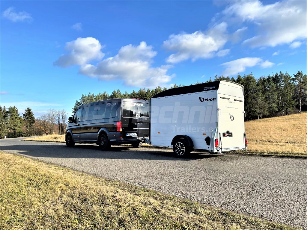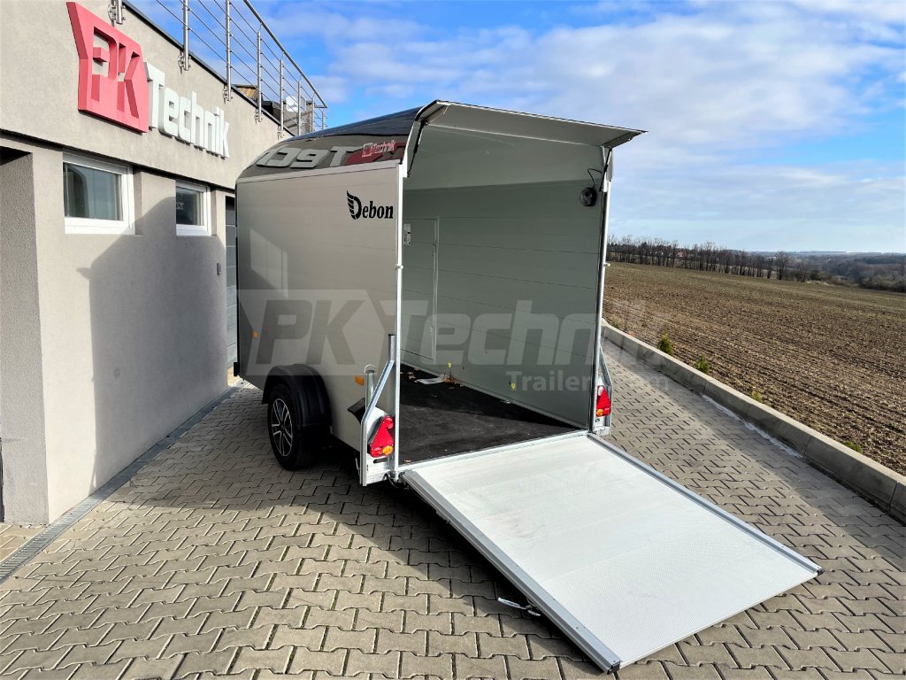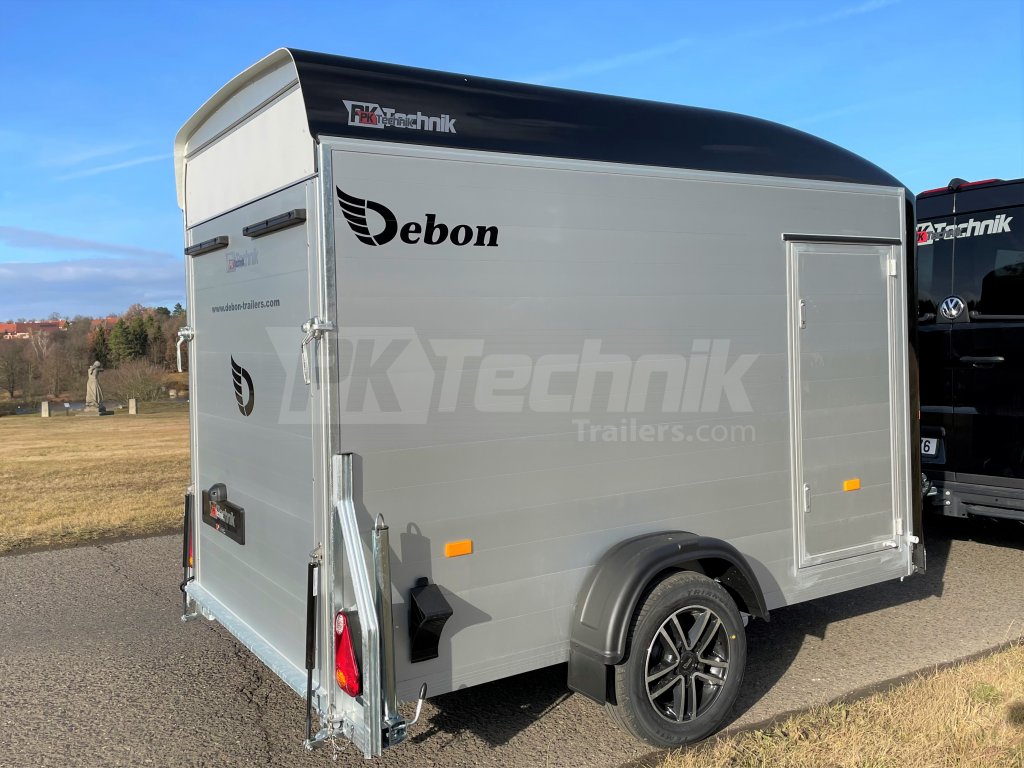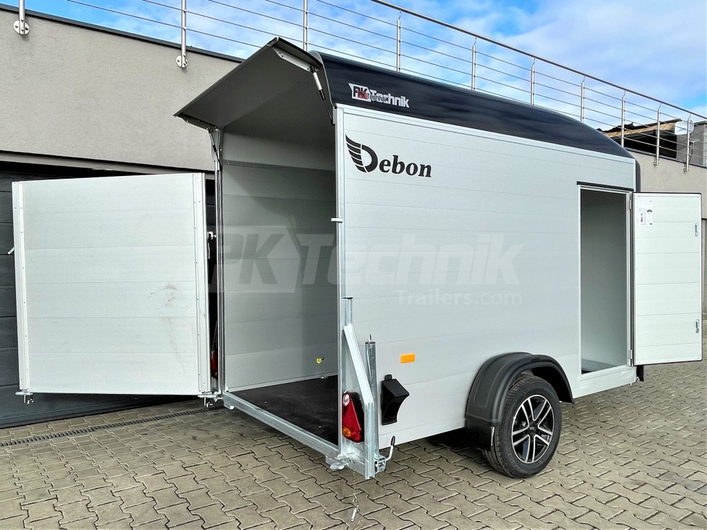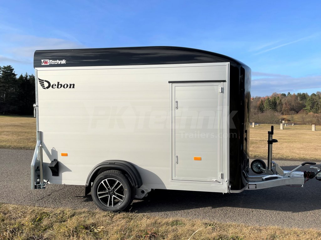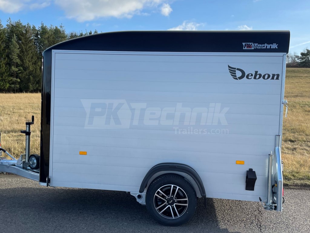 Skříňový přívěs Debon C300 má uzamykatelné boční dveře a odolná hliníková kola. Základní celkovou hmotnost přívěsu vám jakožto ministerstvem dopravy oficiálně akreditovaný importér pro ČR můžeme snížit z 1300 kg až na 750 kg.