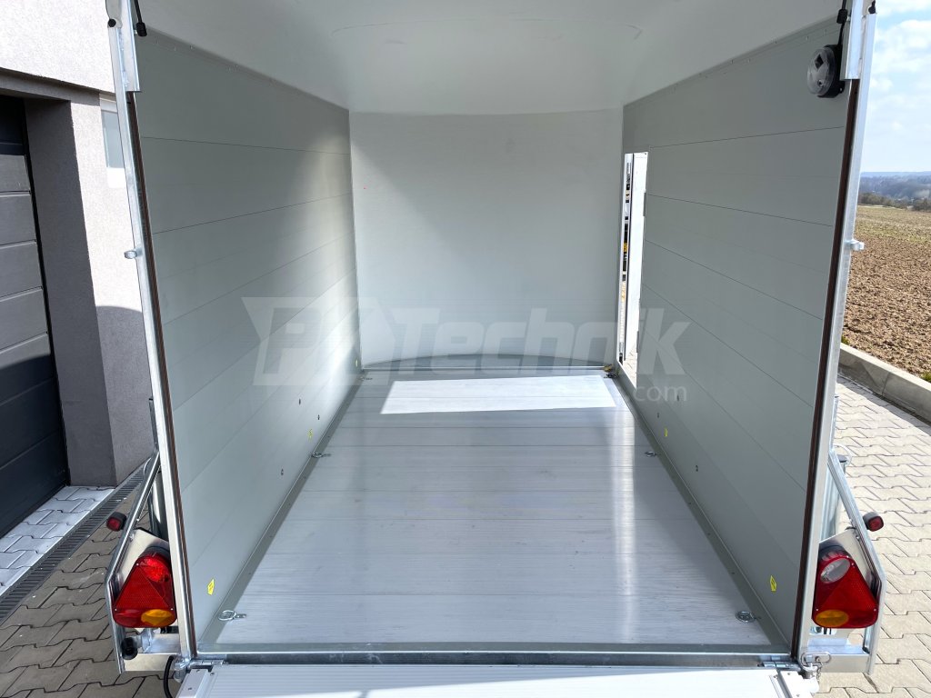Nájezdová rampa, kterou lze otevřít do boku jako dveře, a podlaha jsou vyrobeny z hliníkových profilů se zámky, díky kterým přívěs nabízí velmi dobrou pevnost, dlouhou životnost a také nízkou provozní hmotnost.