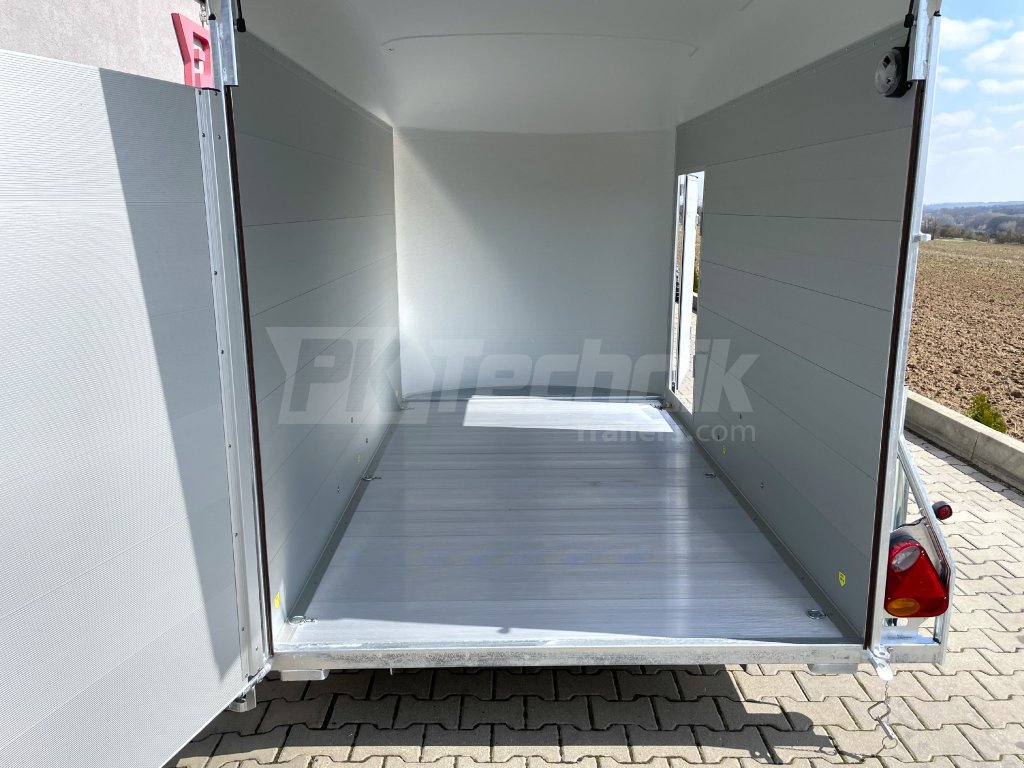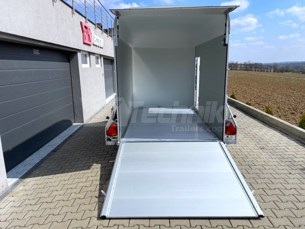 Nájezdová rampa, kterou lze otevřít do boku jako dveře, a podlaha jsou vyrobeny z hliníkových profilů se zámky, díky kterým přívěs nabízí velmi dobrou pevnost, dlouhou životnost a také nízkou provozní hmotnost.