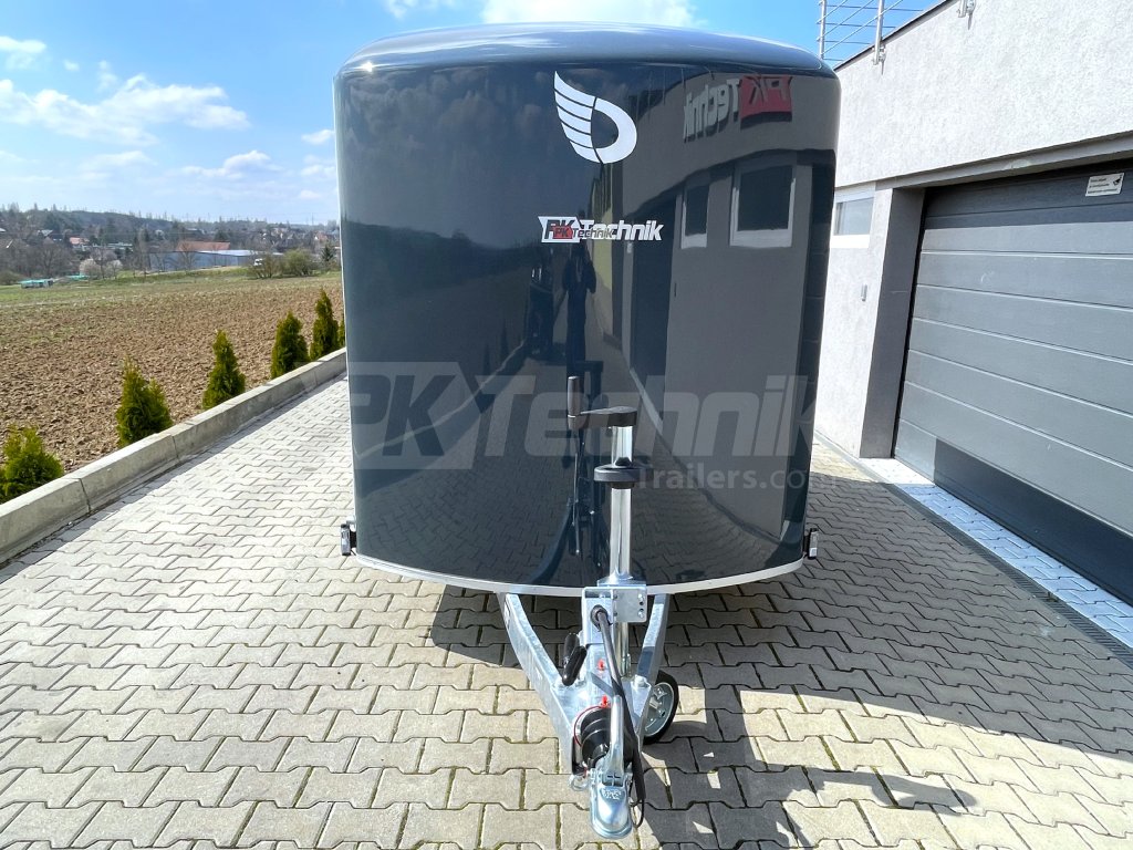Na bočnice navazuje monobloková laminátová střešní nástavba o tloušťce cca 8 mm, která zajišťuje dokonalou aerodynamiku a tuhost celého přívěsu. Podvozek a rám jsou žárově zinkované, což zajišťuje vysokou odolnost proti korozi.