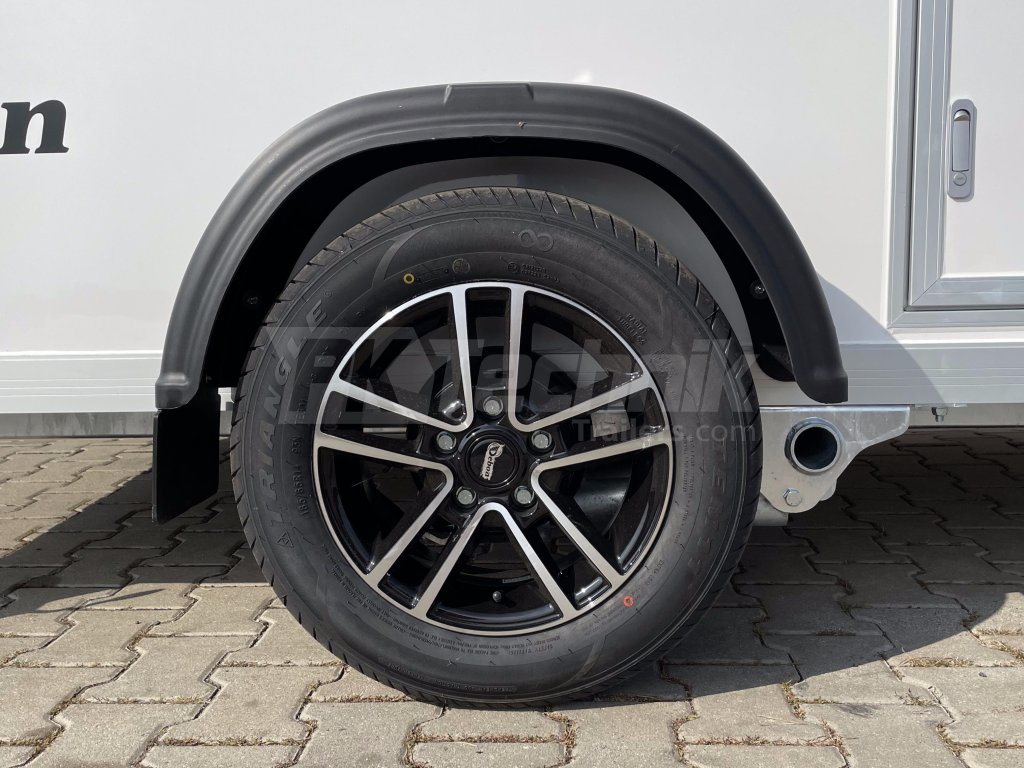 Tento bržděný aerodynamický přívěs má uzamykatelné boční dveře. Základní celkovou hmotnost přívěsu vám jakožto ministerstvem dopravy oficiálně akreditovaný importér pro ČR můžeme snížit z 1300 kg až na 750 kg.