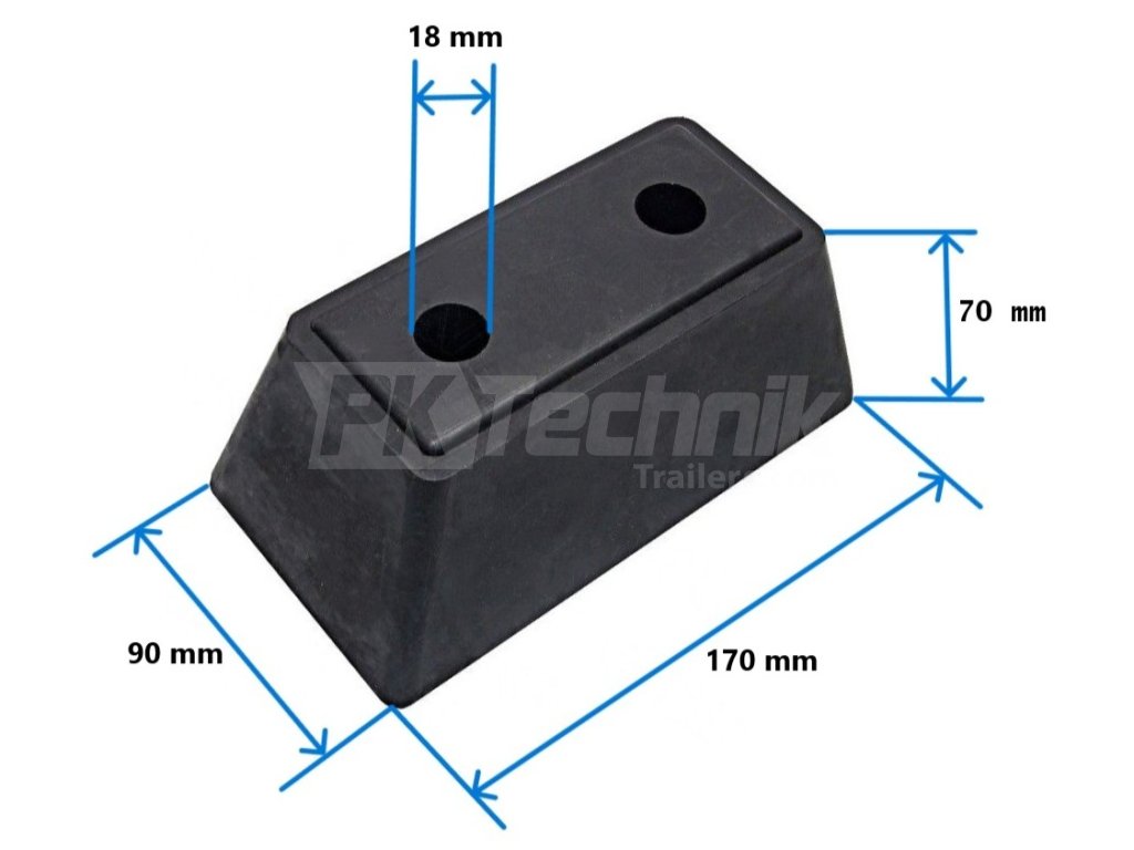 Gumový doraz s rozměry 170 x 90 x 70 mm.