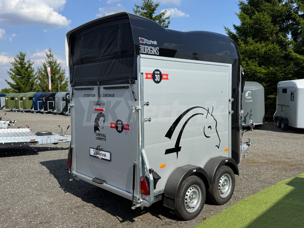 Základní středně velký přívěs Cheval Liberté GOLD ORIGINS od renomovaného výrobce Cheval Liberté je určený k přepravě dvou velkých koní se stáním přímo. Monoblokový laminát přední a střešní části, podlahové a boční hliníkové panely zajišťují nízkou provozní hmotnost a dlouhou životnost přívěsu. GOLD ORIGINS patří do kategorie nejlevnějších přívěsů pro koně, a přesto nabízí vysokou spolehlivost. Jako jediný model z nabídky Chveval Liberté není vybaven nezávislými rameny s odpružením Pullman 2, ale standardními přívěsovými nápravami KNOTT. Je ideální pro nenáročné uživatele, kteří hledají spolehlivý a cenově dostupný způsob přepravy pro své koně.
