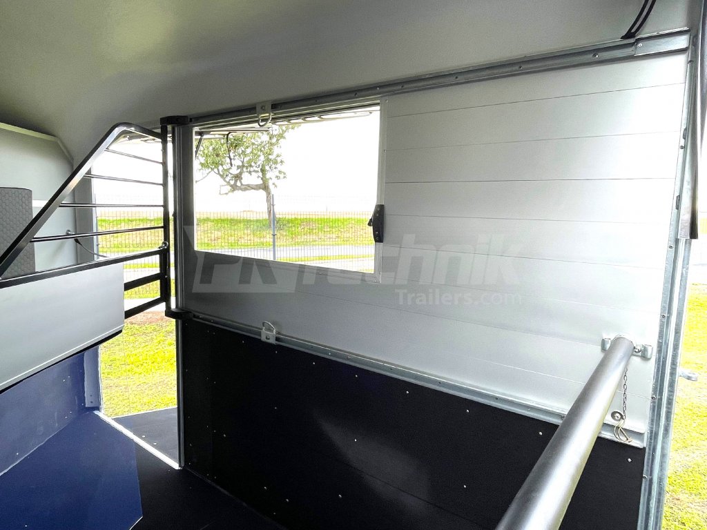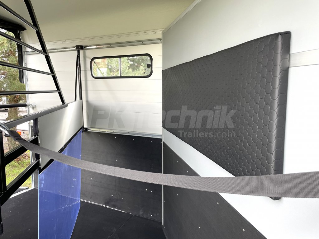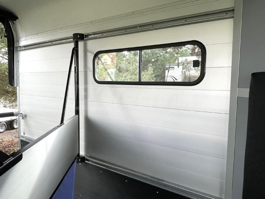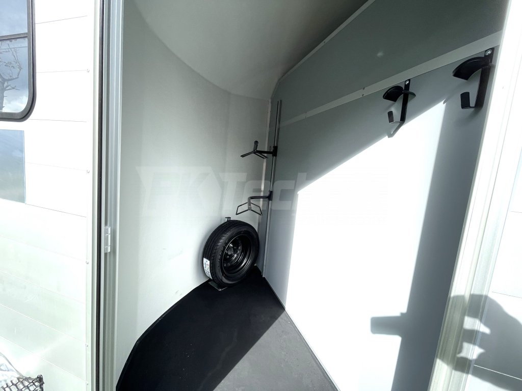 Ve standardní výbavě je velká prostorná sedlovna přístupná venkovními bočními dveřmi vlevo a vybavená držáky sedel a uzdeček. Základní celkovou hmotnost přívěsu vám, jako akreditovaný importér pro ČR schválený ministerstvem dopravy, můžeme snížit z 2600 kg až na 1400 kg.
