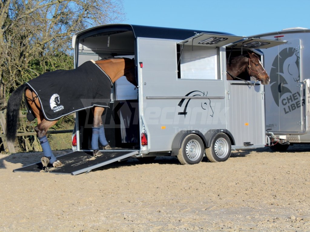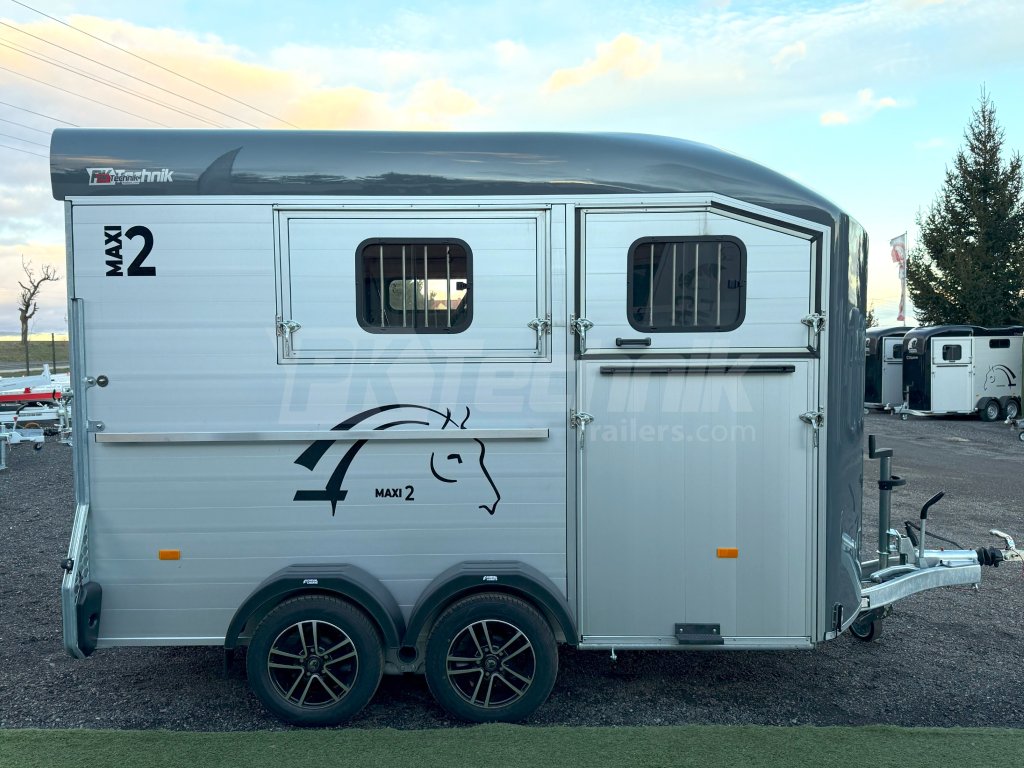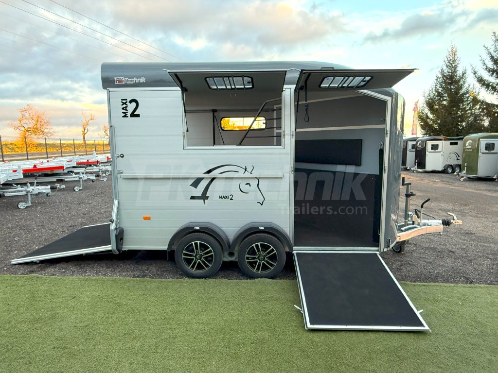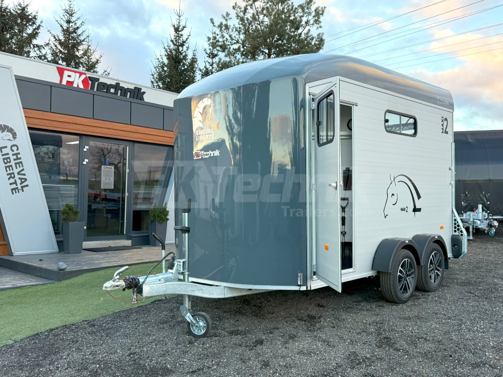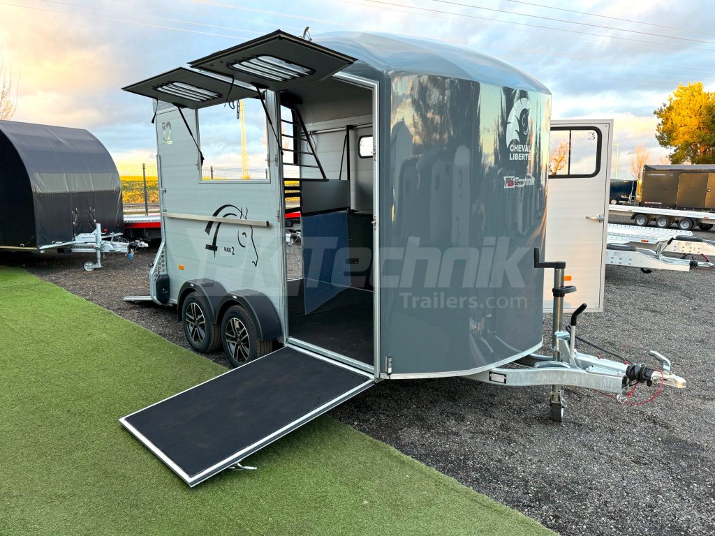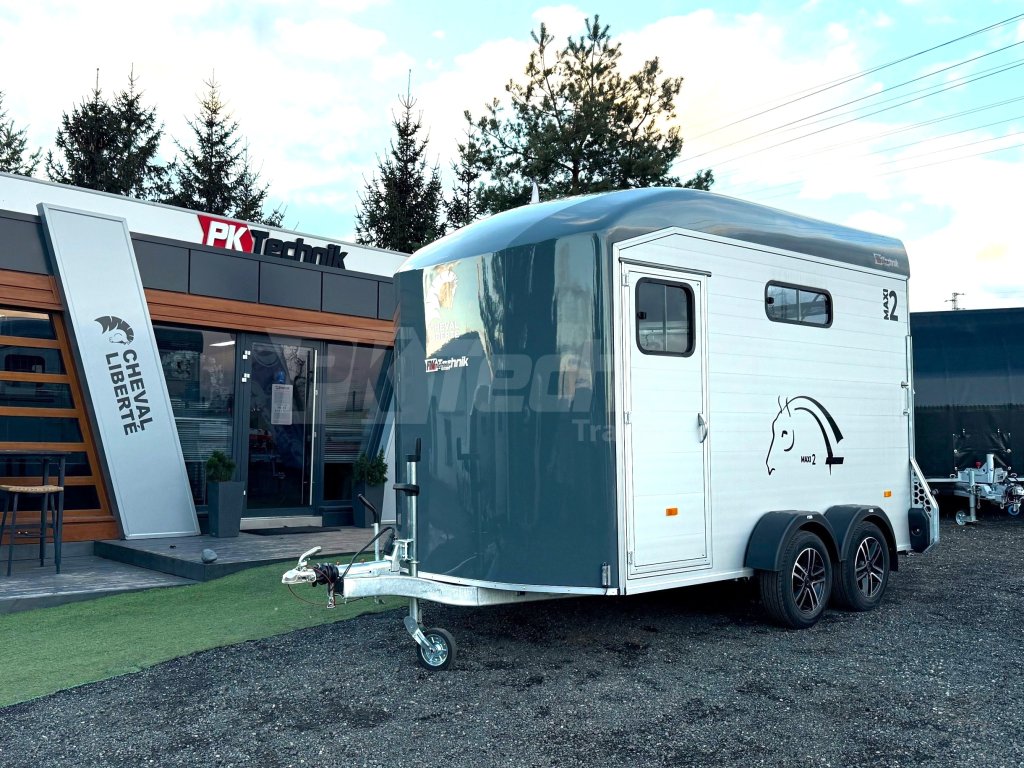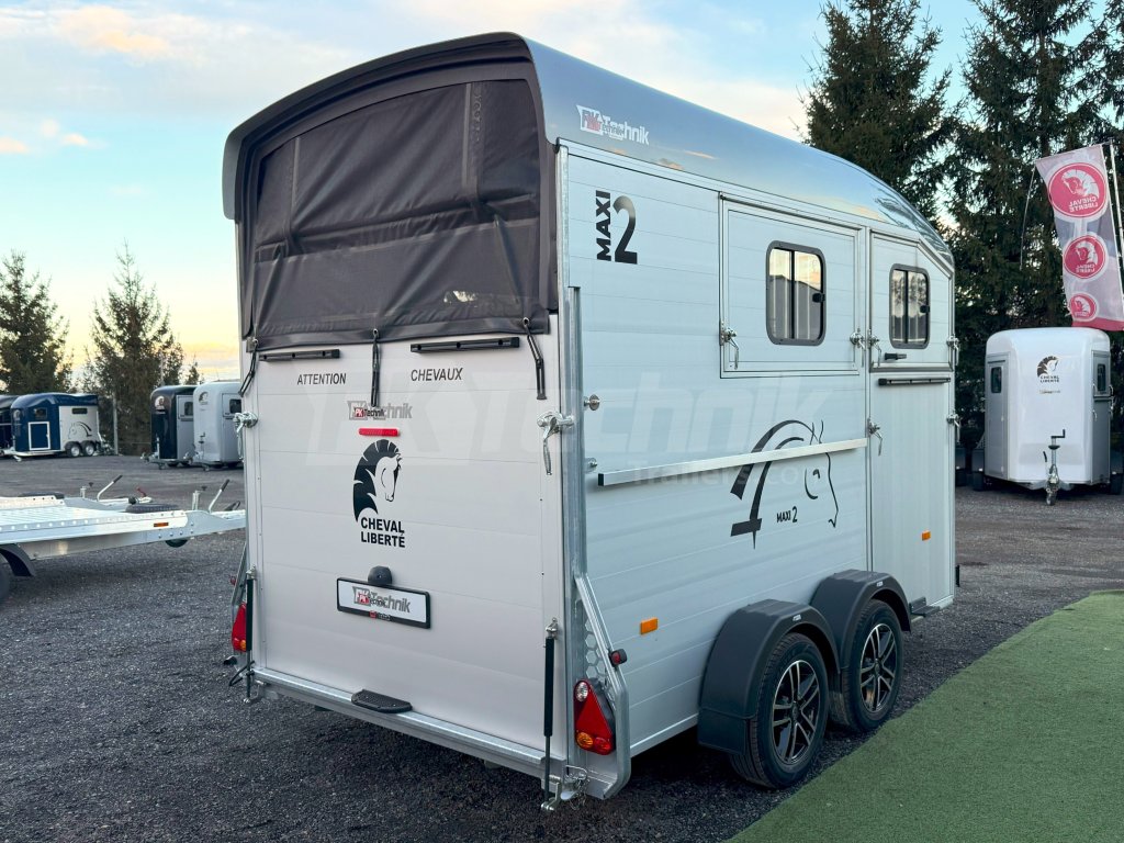 Přívěs Cheval Liberté MAXI 2 od renomovaného francouzského výrobce Cheval Liberté je určený pro ty, kteří hledají velký přívěs pro bezpečnou přepravu dvou velkých koní v šikmém stání. Komfortní snížený podvozek Pullman 2 s nezávislými rameny, pružinami a tlumiči již ve standardní výbavě posouvá přívěs kvalitativně mezi špičku ve své kategorii. Ochrana hlavního ocelového rámu proti korozi je zajištěna žárovým zinkováním. Boční stěny a podlaha přívěsu z hliníkových panelů, střešní a přední část z monoblokového 5-ti vrstvého laminátu o tloušťce 8 mm s integrovanými ocelovými výztuhami, zajišťují nízkou provozní hmotnost, dokonalý komfort při přepravě a také dlouhou životnost přívěsu. Mezi přednosti modelů MAXI patří charakteristická širší a nižší přední vykládací rampa, která výrazně usnadňuje výstup koní, pro které je obtížné vycházet z přívěsu pozadu.