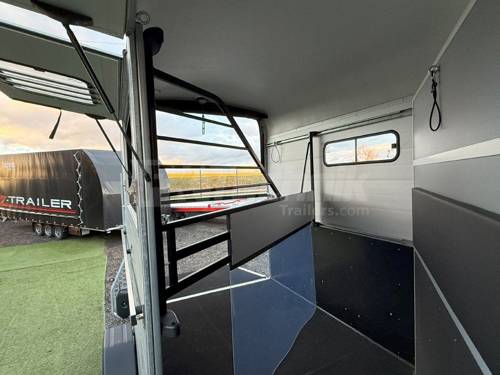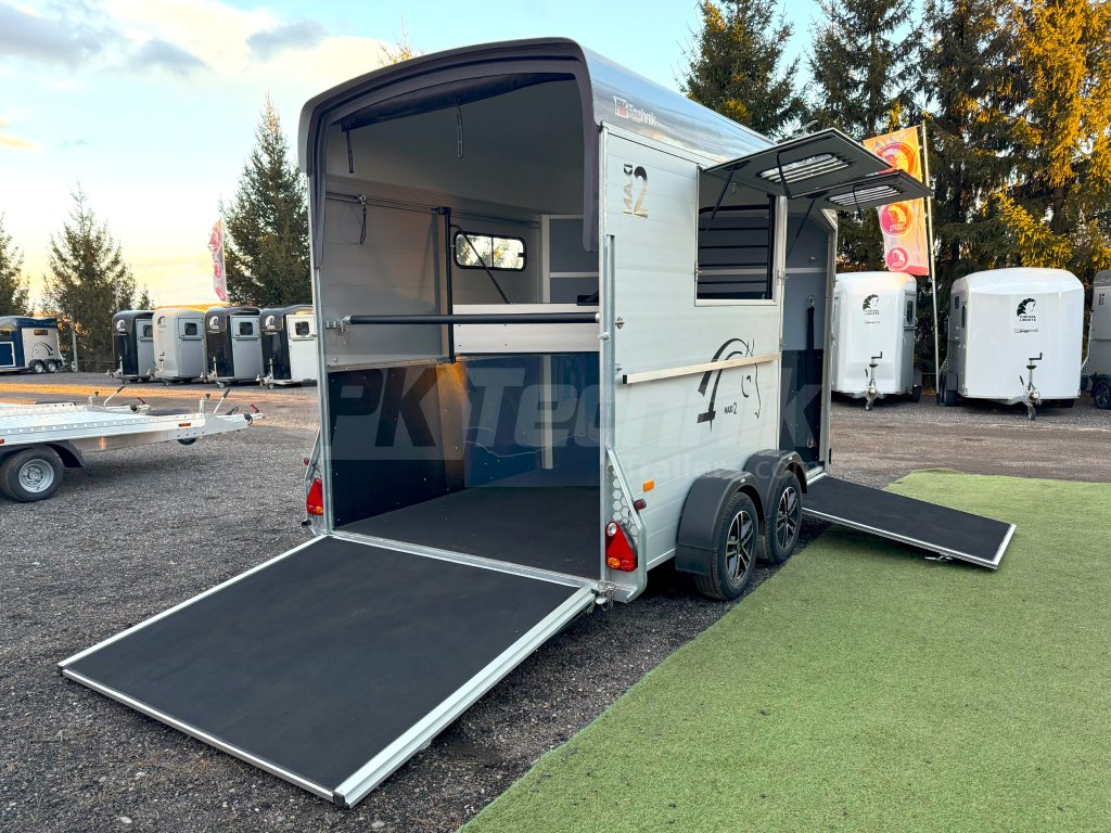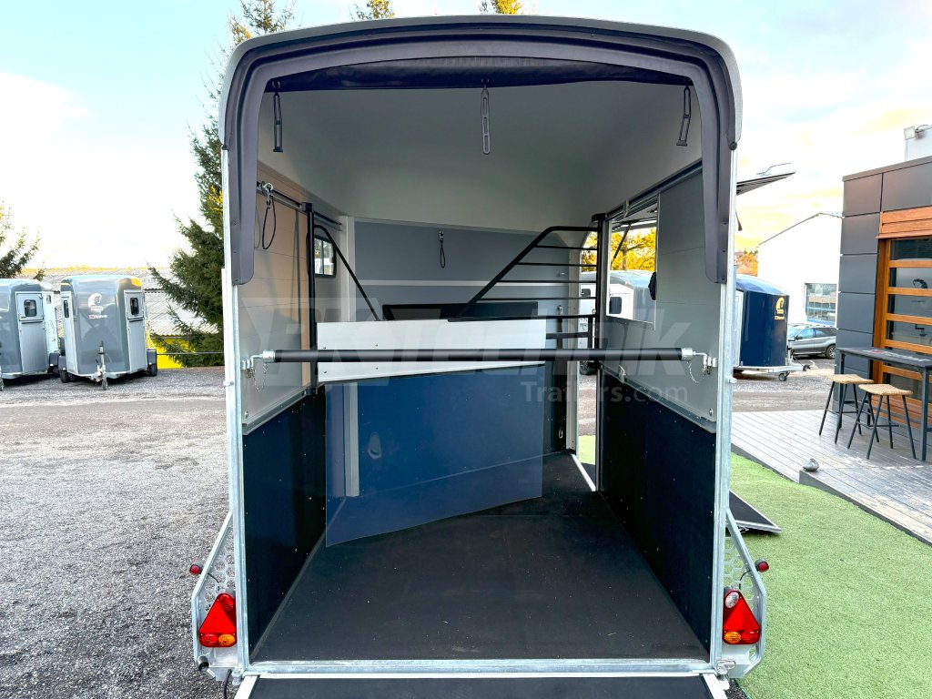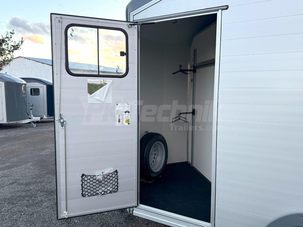 Ve standardní výbavě je velká prostorná sedlovna přístupná venkovními bočními dveřmi vlevo a vybavená držáky sedel a uzdeček. Základní celkovou hmotnost přívěsu vám, jako akreditovaný importér pro ČR schválený ministerstvem dopravy, můžeme snížit z 2600 kg až na 1400 kg.