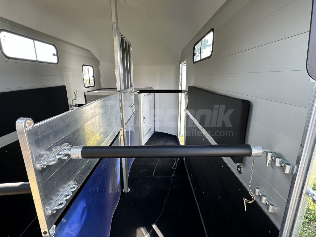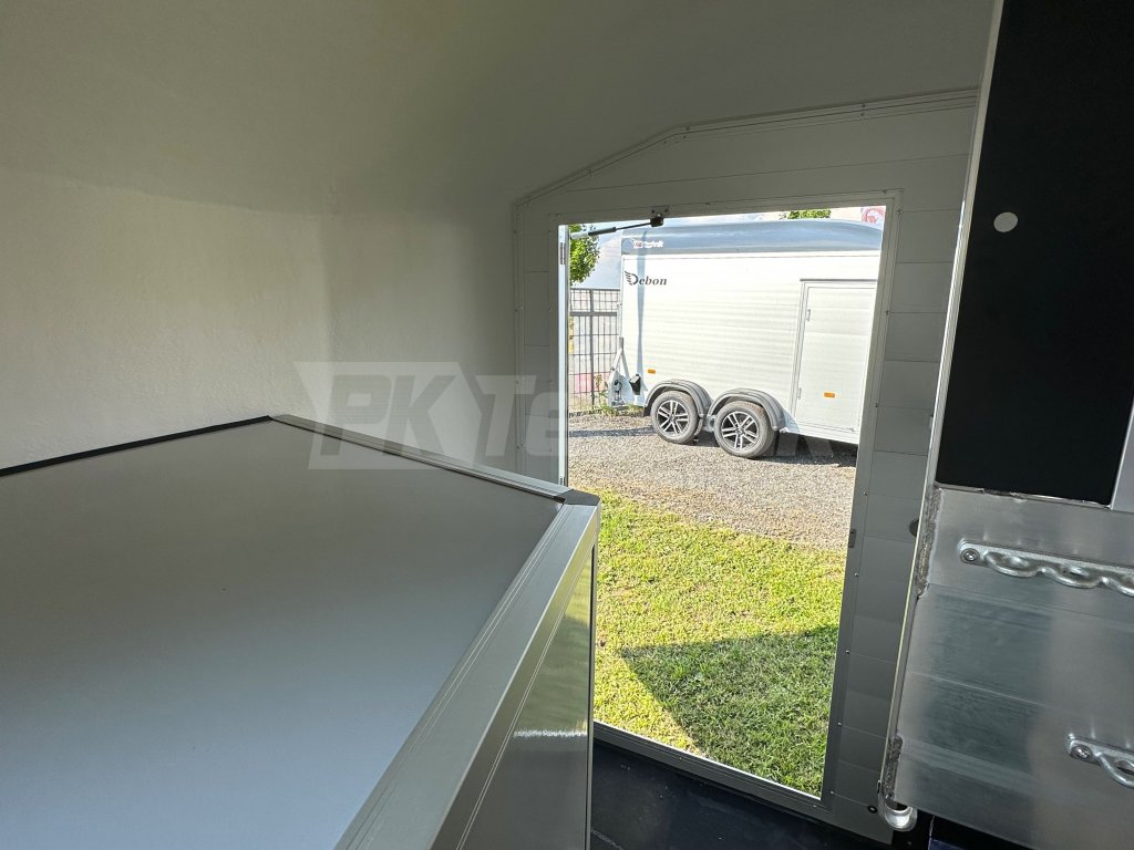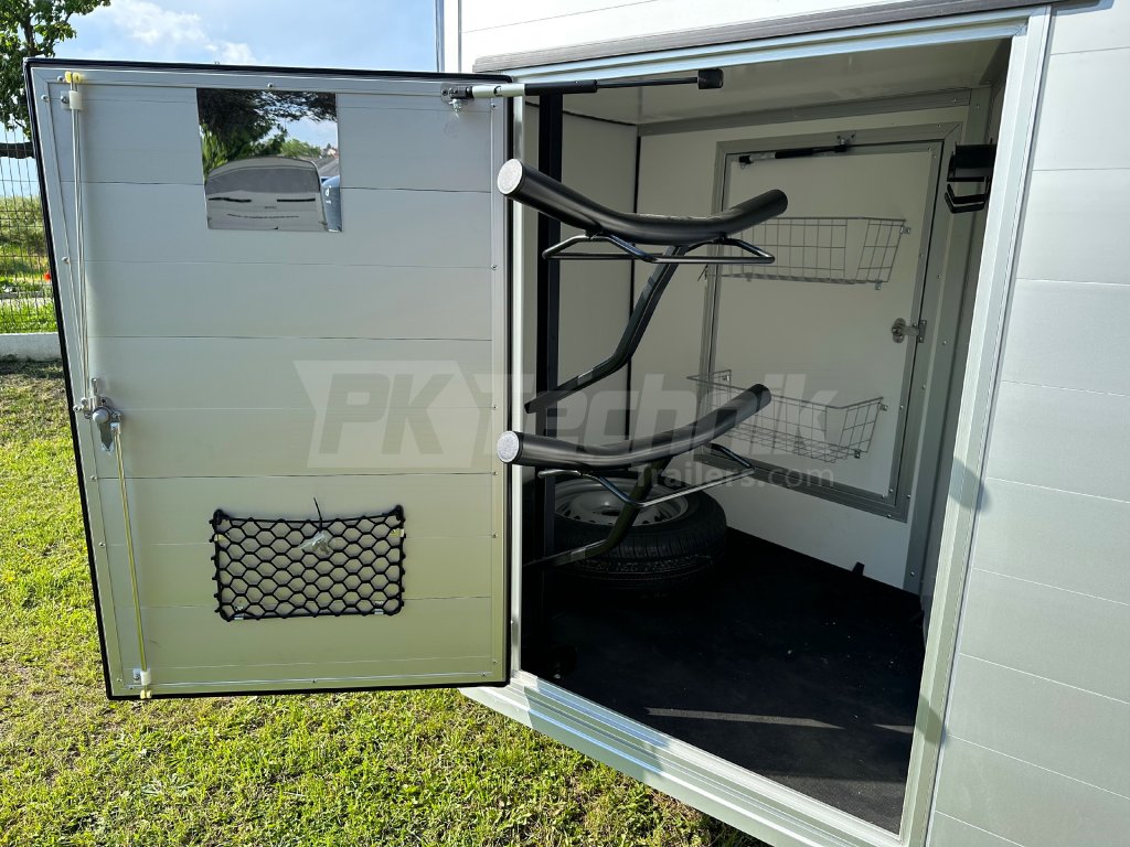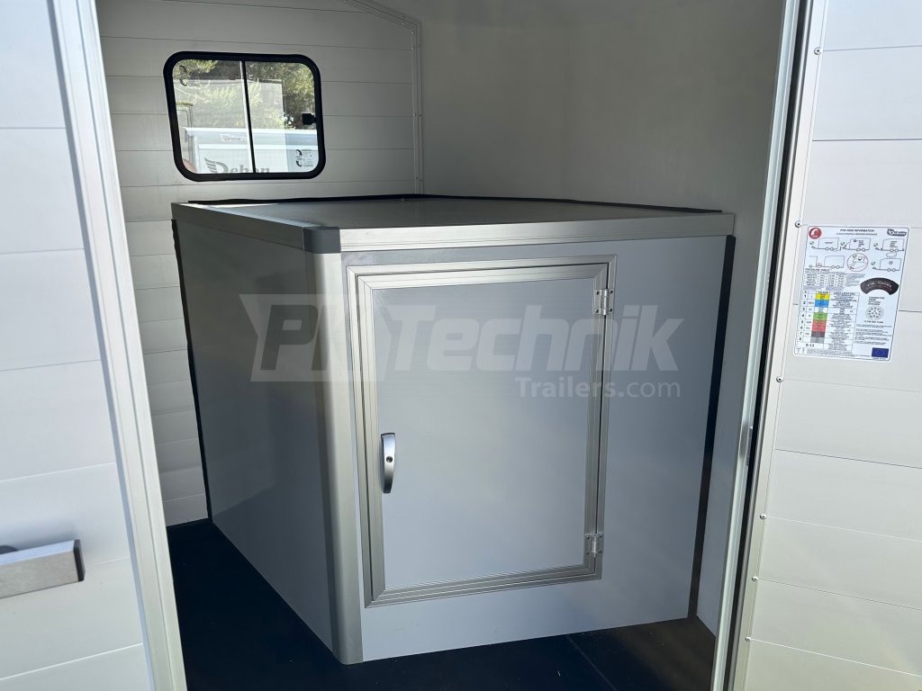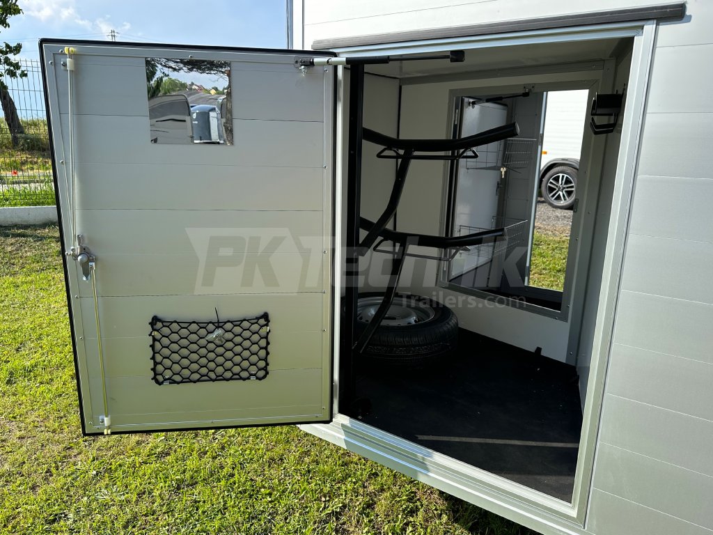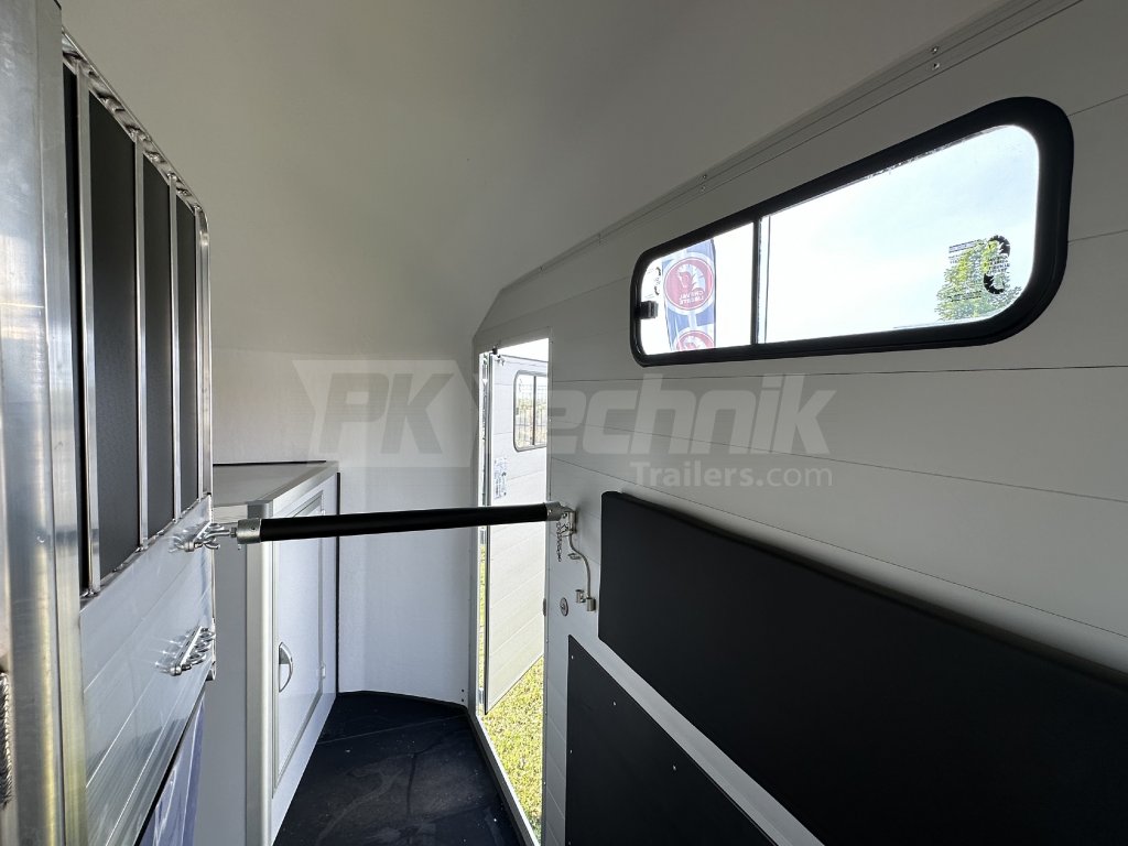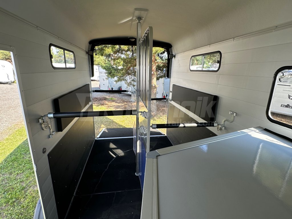 Ve standardní výbavě je velká prostorná sedlovna s posuvnou přepážkou po celé šíři a výši přívěsu nebo malá skříňová sedlovna, která nabízí více vnitřního prostoru pro koně a je přístupná venkovními bočními dveřmi na levé straně přívěsu nebo obslužnými vnitřními dvířky. Oba typy sedloven jsou vybaveny držáky sedel a uzdeček. Základní celkovou hmotnost přívěsu vám, jako akreditovaný importér pro ČR schválený ministerstvem dopravy, můžeme snížit z 2600 kg až na 1400 kg.