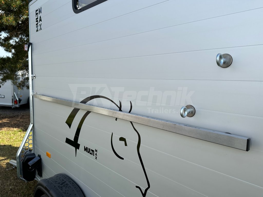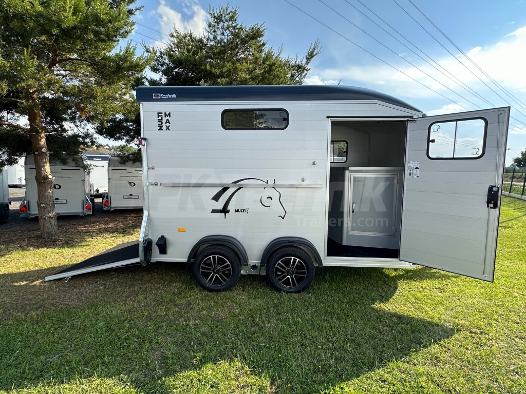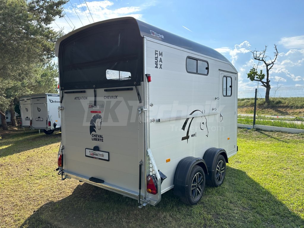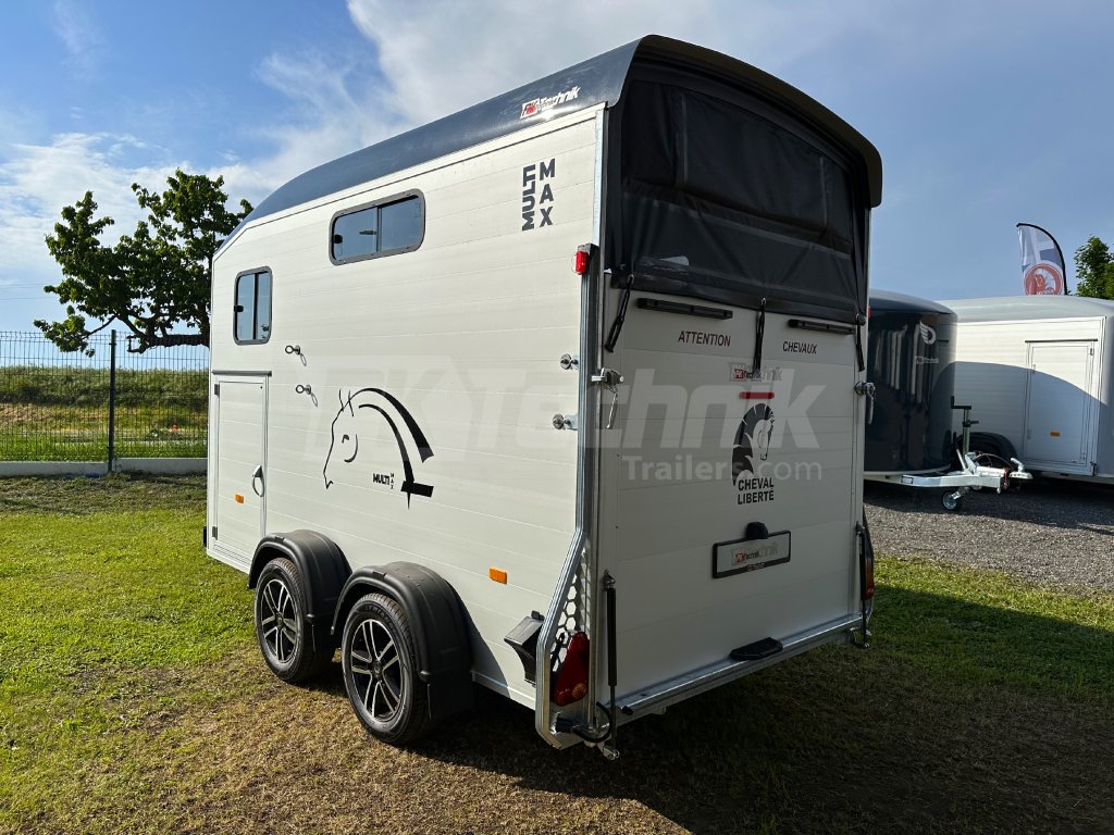 Přívěs Cheval Liberté MULTIMAX od renomovaného francouzského výrobce Cheval Liberté je dokonalou volbou pro ty, kteří hledají velký přívěs pro bezpečnou přepravu dvou velkých koní v klasickém přímém stání. Komfortní snížený podvozek Pullman 2 s nezávislými rameny, pružinami a tlumiči již ve standardní výbavě posouvá přívěs kvalitativně mezi špičku ve své kategorii. Ochrana hlavního ocelového rámu proti korozi je zajištěna žárovým zinkováním. Boční stěny a podlaha přívěsu z hliníkových panelů, střešní a přední část z monoblokového 5-ti vrstvého laminátu o tloušťce 8 mm s integrovanými ocelovými výztuhami, zajišťují nízkou provozní hmotnost, dokonalý komfort při přepravě a také dlouhou životnost přívěsu.