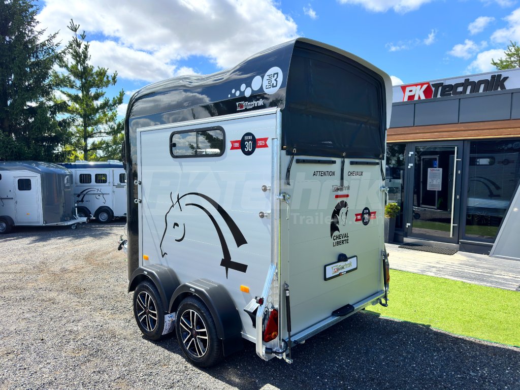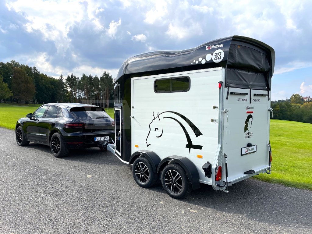 Nejprodávanější přívěs pro dva koně střední velikosti, Cheval Liberté GOLD 3, od tradičního francouzského výrobce Cheval Liberté, s více než 30 let dlouhou historií výroby přívěsů pro koně, díky které se jedná o nejprodávanější značku přívěsů pro koně v celé Evropě. Je určen k přepravě dvou středně velkých koní se stáním přímo, a již v základní výbavě je vybaven kompaktní sedlovnou. Mezi klíčové vlastnosti patří tradiční aerodynamický tvar a komfortní podvozek PULLMAN 2, který je složen z nezávislého zavěšení každého kola, vybaveného pružinou a tlumičem nápravy. Díky tomuto podvozku je přívěs nejen snížený, ale především velmi komfortní nejen pro přepravované koně, ale také pro tažné vozidlo a jeho posádku. Karoserie se skládá z monoblokového laminátu vlastní výroby, hliníkové podlahy a hliníkových bočních stěn. Díky tomu nabízí přívěs nejen nízkou provozní hmotnost, ale především dlouhou životnost a relativní bezúdržbovost.