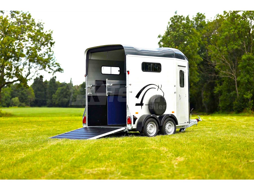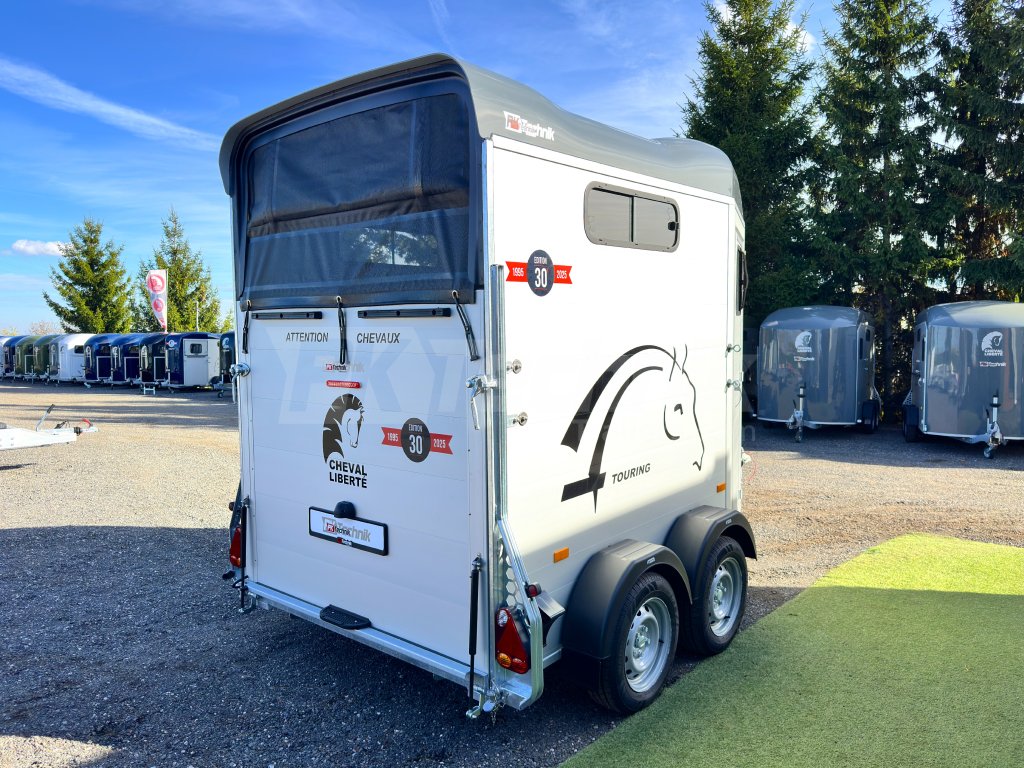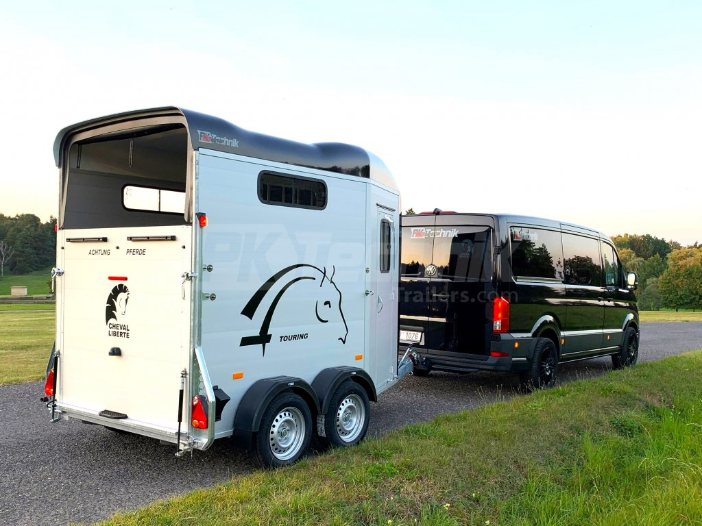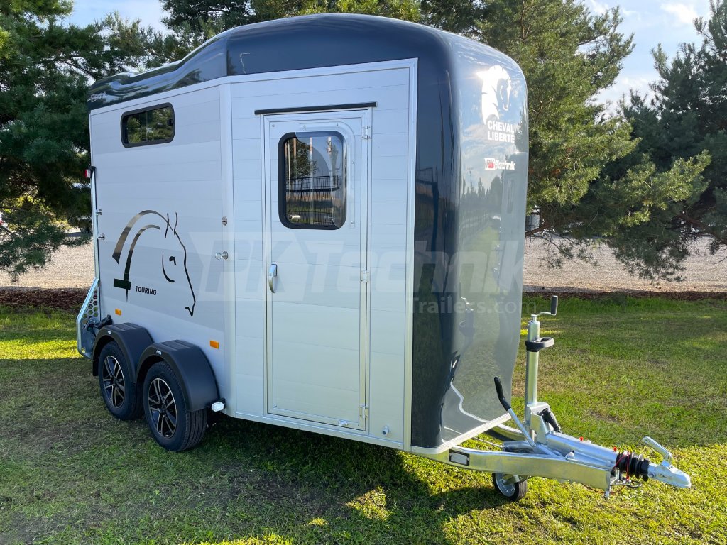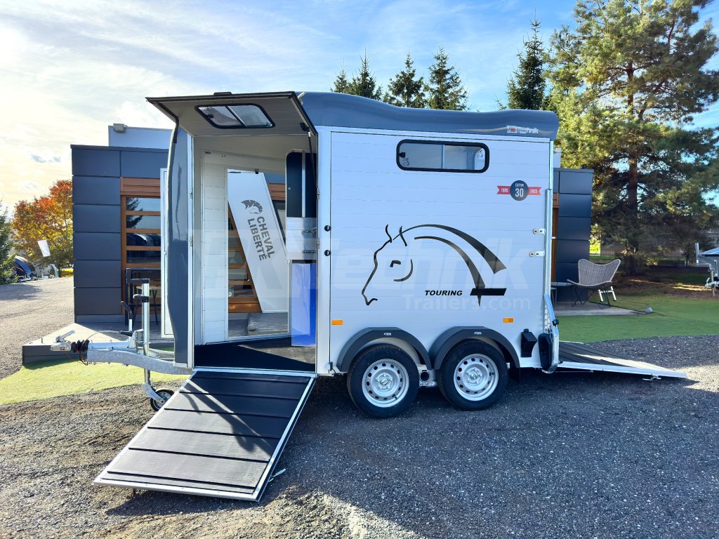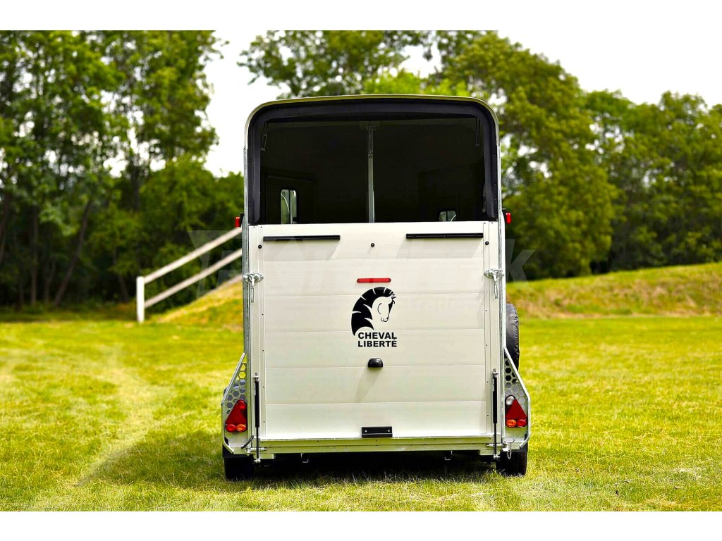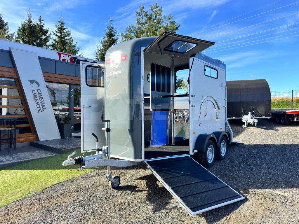 Přívěs Cheval Liberté TOURING COUNTRY od renomovaného francouzského výrobce Cheval Liberté je dokonalou volbou pro ty, kteří hledají velký přívěs pro přepravu dvou velkých koní v klasickém přímém stání. Mezi klíčové vlastnosti tohoto modelu patří široká a nízko položená přední vykládací rampa, která výrazně usnadňuje vykládání koní, pro které je obtížné vycházet z přívěsu pozadu. Monoblokový laminát přední a střešní části a podlahové a boční hliníkové panely zajišťují nízkou provozní hmotnost a dlouhou životnost přívěsu. Komfortní podvozek s nápravami PULLMAN 2 zajišťuje plynulejší a bezpečnější jízdu bez nepříjemných rázů od přívěsu a tedy i velmi vysoký jízdní komfort a nejvyšší možnou bezpečnost pro přepravované koně. K tomuto modelu nabízíme vestavbu vnitřní sedlovny včetně montážních prací.