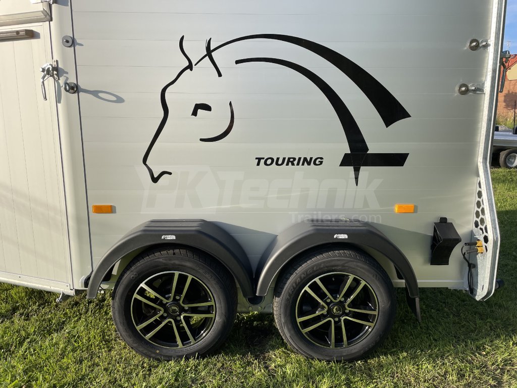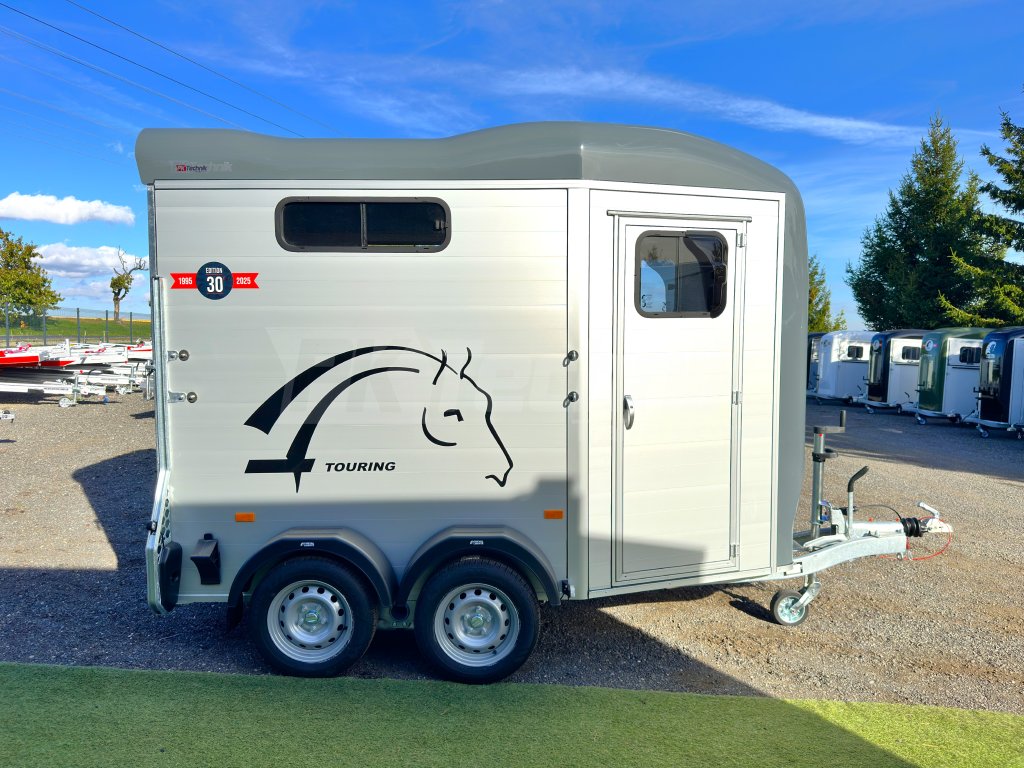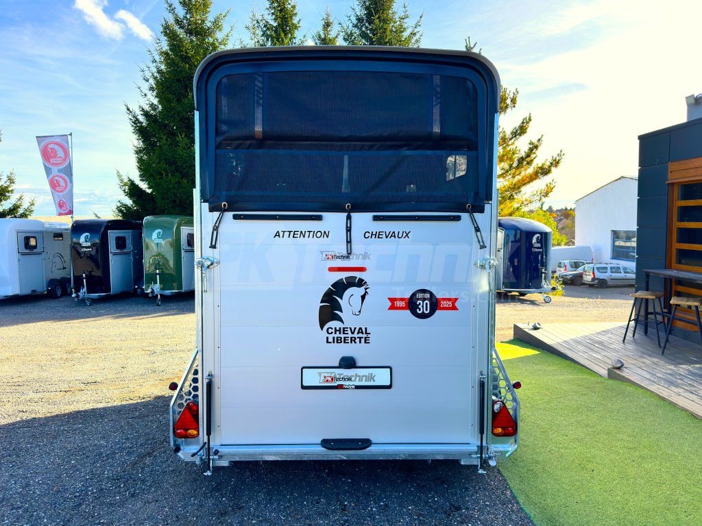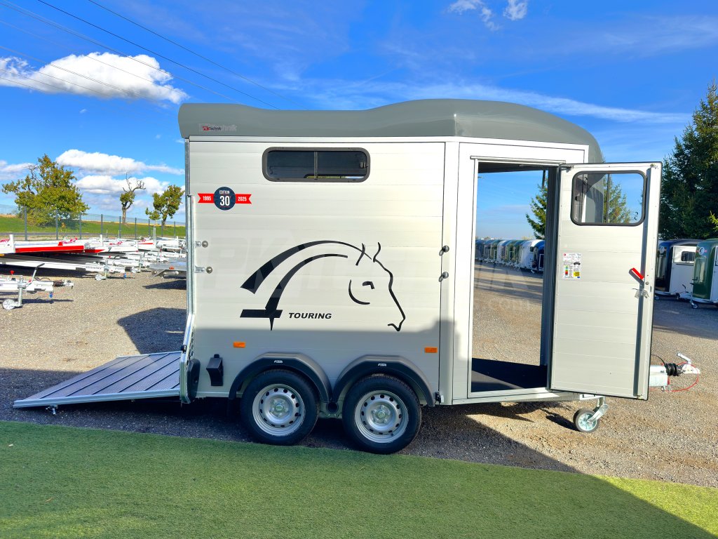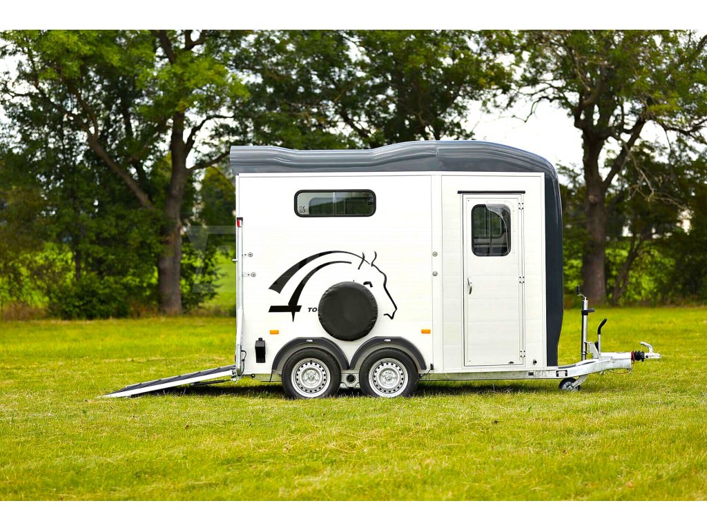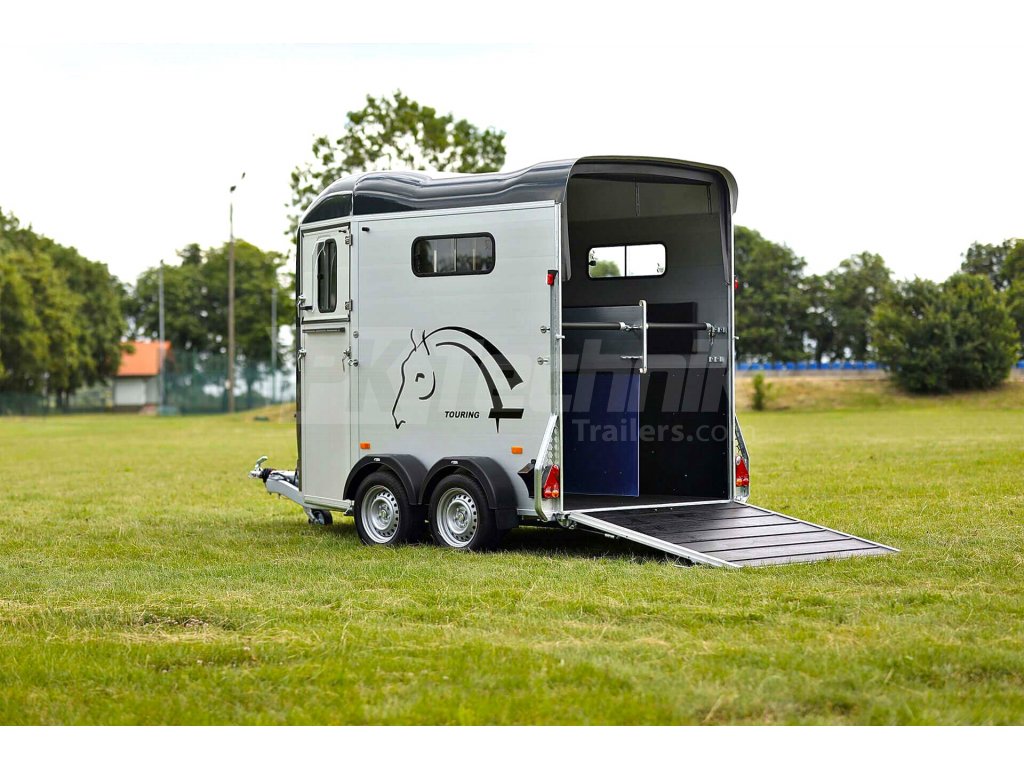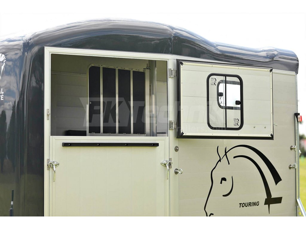 Přívěs Cheval Liberté TOURING COUNTRY od renomovaného francouzského výrobce Cheval Liberté je dokonalou volbou pro ty, kteří hledají velký přívěs pro přepravu dvou velkých koní v klasickém přímém stání. Mezi klíčové vlastnosti tohoto modelu patří široká a nízko položená přední vykládací rampa, která výrazně usnadňuje vykládání koní, pro které je obtížné vycházet z přívěsu pozadu. Monoblokový laminát přední a střešní části a podlahové a boční hliníkové panely zajišťují nízkou provozní hmotnost a dlouhou životnost přívěsu. Komfortní podvozek s nápravami PULLMAN 2 zajišťuje plynulejší a bezpečnější jízdu bez nepříjemných rázů od přívěsu a tedy i velmi vysoký jízdní komfort a nejvyšší možnou bezpečnost pro přepravované koně. K tomuto modelu nabízíme vestavbu vnitřní sedlovny včetně montážních prací.
