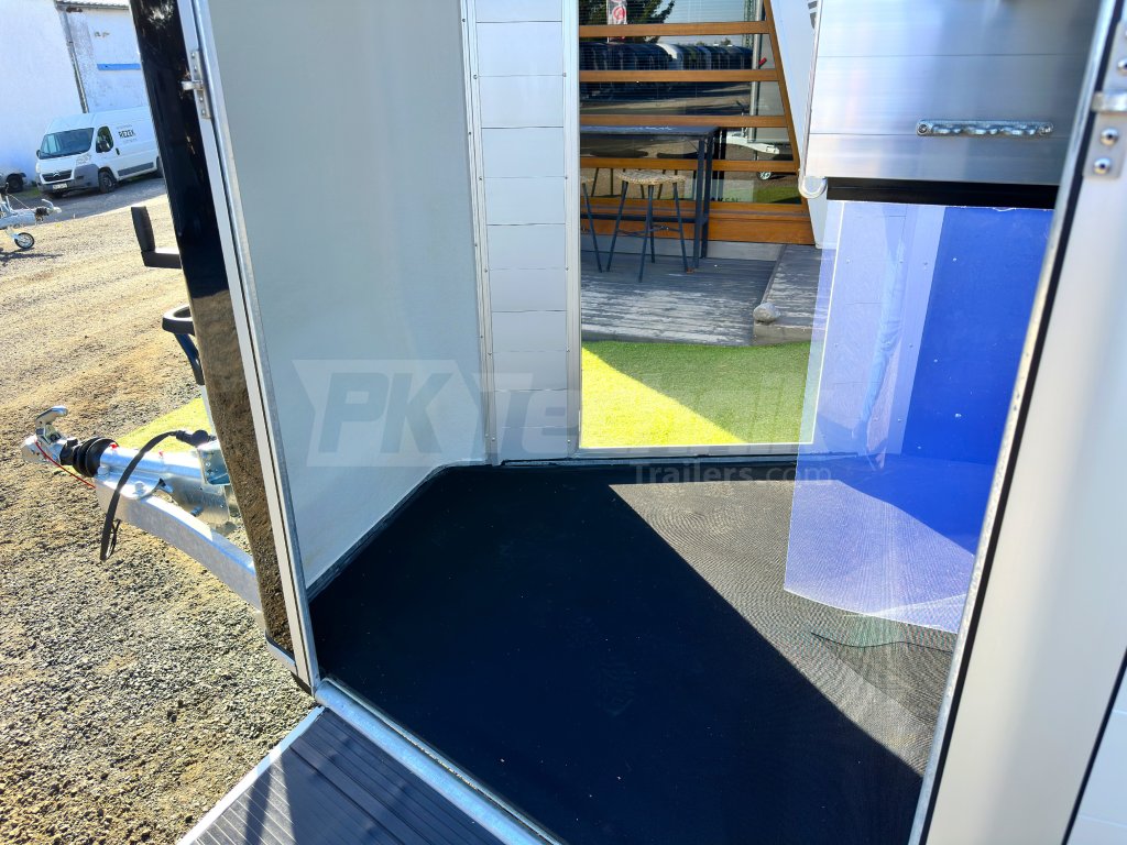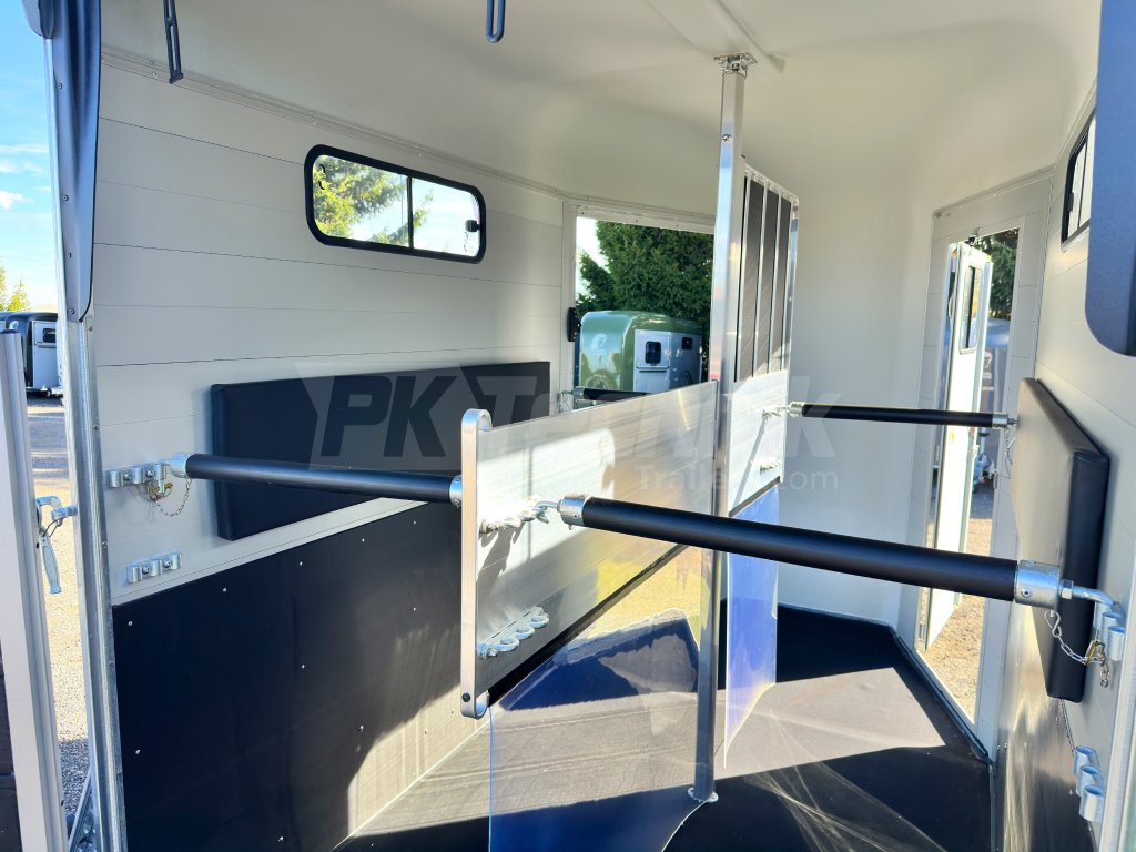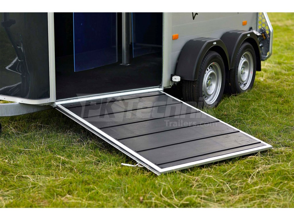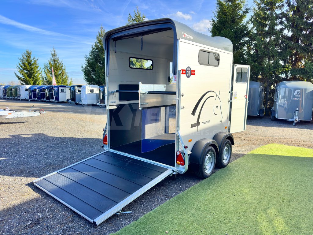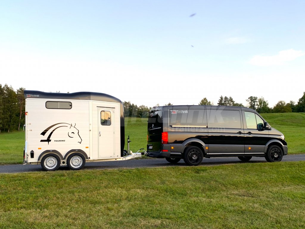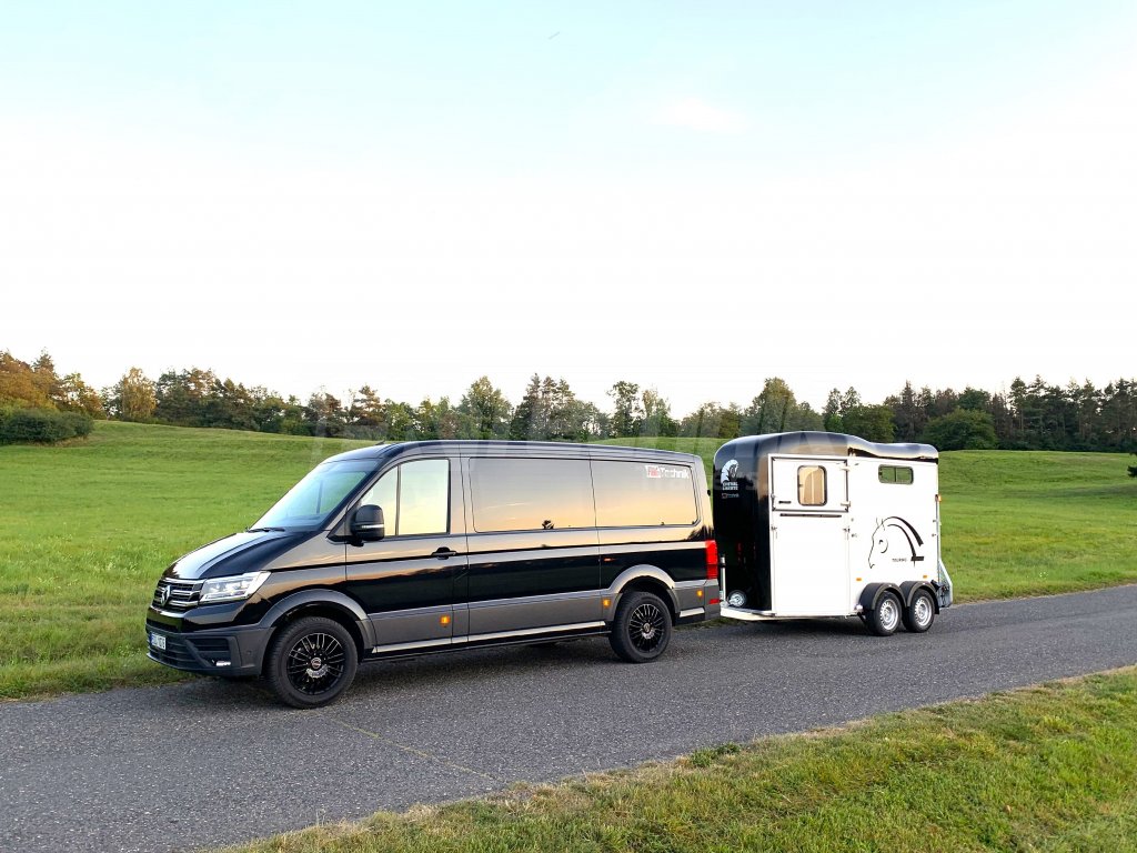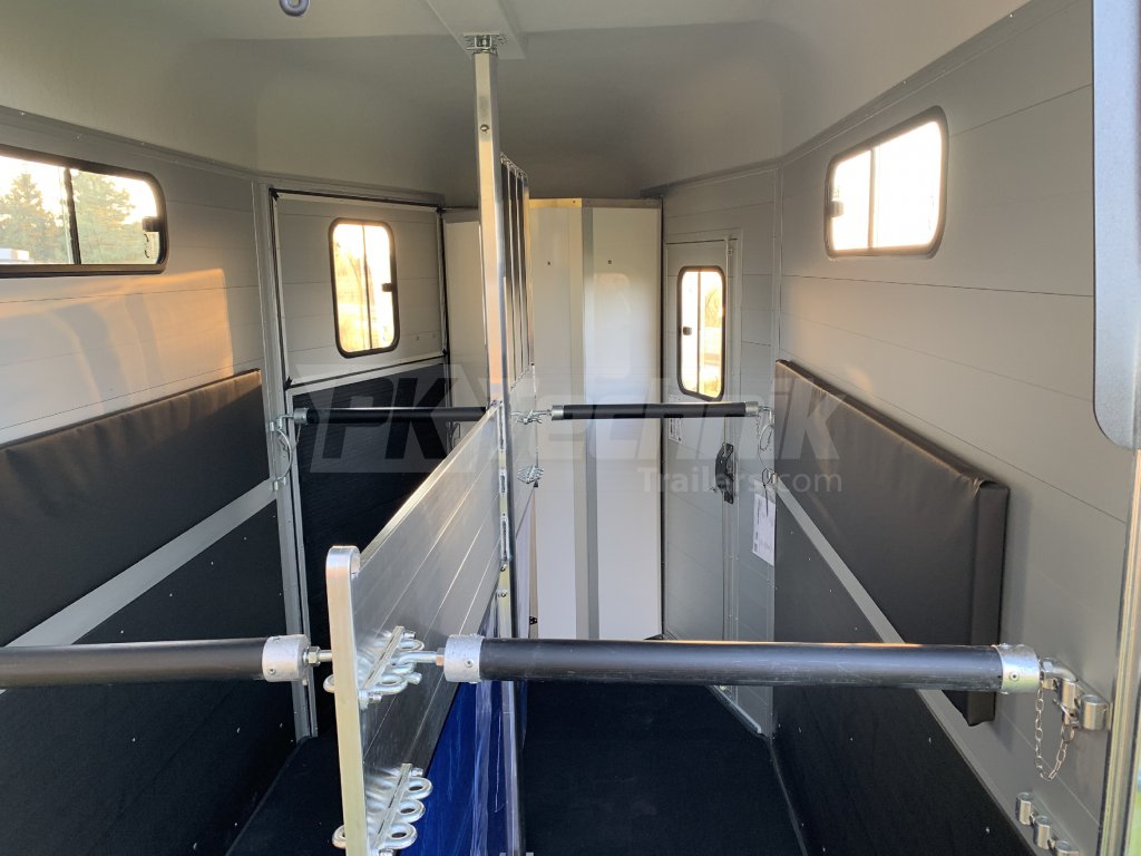 Přívěs Cheval Liberté TOURING COUNTRY od renomovaného francouzského výrobce Cheval Liberté je dokonalou volbou pro ty, kteří hledají velký přívěs pro přepravu dvou velkých koní v klasickém přímém stání. Mezi klíčové vlastnosti tohoto modelu patří široká a nízko položená přední vykládací rampa, která výrazně usnadňuje vykládání koní, pro které je obtížné vycházet z přívěsu pozadu. Monoblokový laminát přední a střešní části a podlahové a boční hliníkové panely zajišťují nízkou provozní hmotnost a dlouhou životnost přívěsu. Komfortní podvozek s nápravami PULLMAN 2 zajišťuje plynulejší a bezpečnější jízdu bez nepříjemných rázů od přívěsu a tedy i velmi vysoký jízdní komfort a nejvyšší možnou bezpečnost pro přepravované koně. K tomuto modelu nabízíme vestavbu vnitřní sedlovny včetně montážních prací.