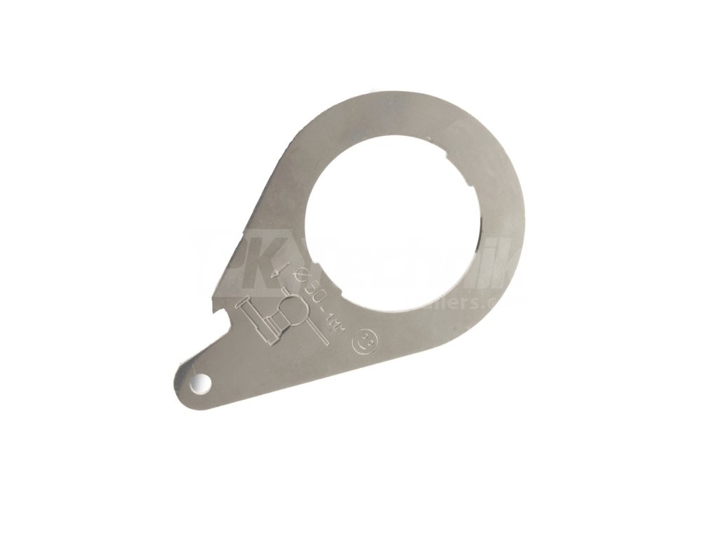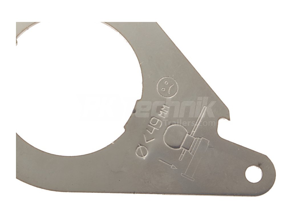 Ocelová měrka slouží pro rychlé posouzení míry opotřebení tažného kulového zařízení. Díky ní snadno rozpoznáte jeho nadměrné opotřebení. Pokud je tažná koule nebo připojovací tažné zařízení opotřebeno nadměrně, není spojení vozu s přívěsem bezpečné. Předepsaný průměr nové koule je 49,61 - 50,00 mm, za opotřebovaný se považuje průměr 49,00 mm a nižší.