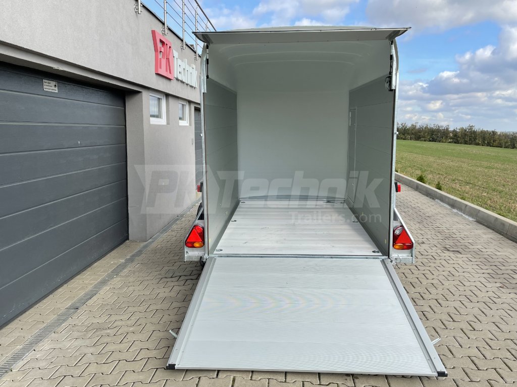 Nájezdová rampa, kterou lze otevřít do boku jako dveře, a podlaha jsou vyrobeny z hliníkových profilů se zámky, díky kterým přívěs nabízí velmi dobrou pevnost, dlouhou životnost a také nízkou provozní hmotnost.
