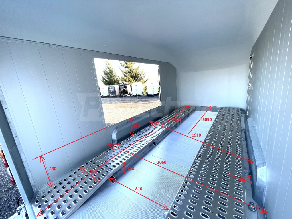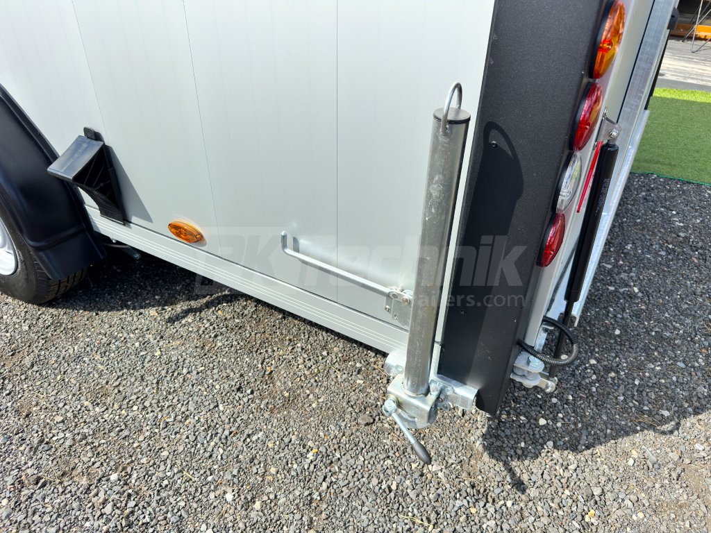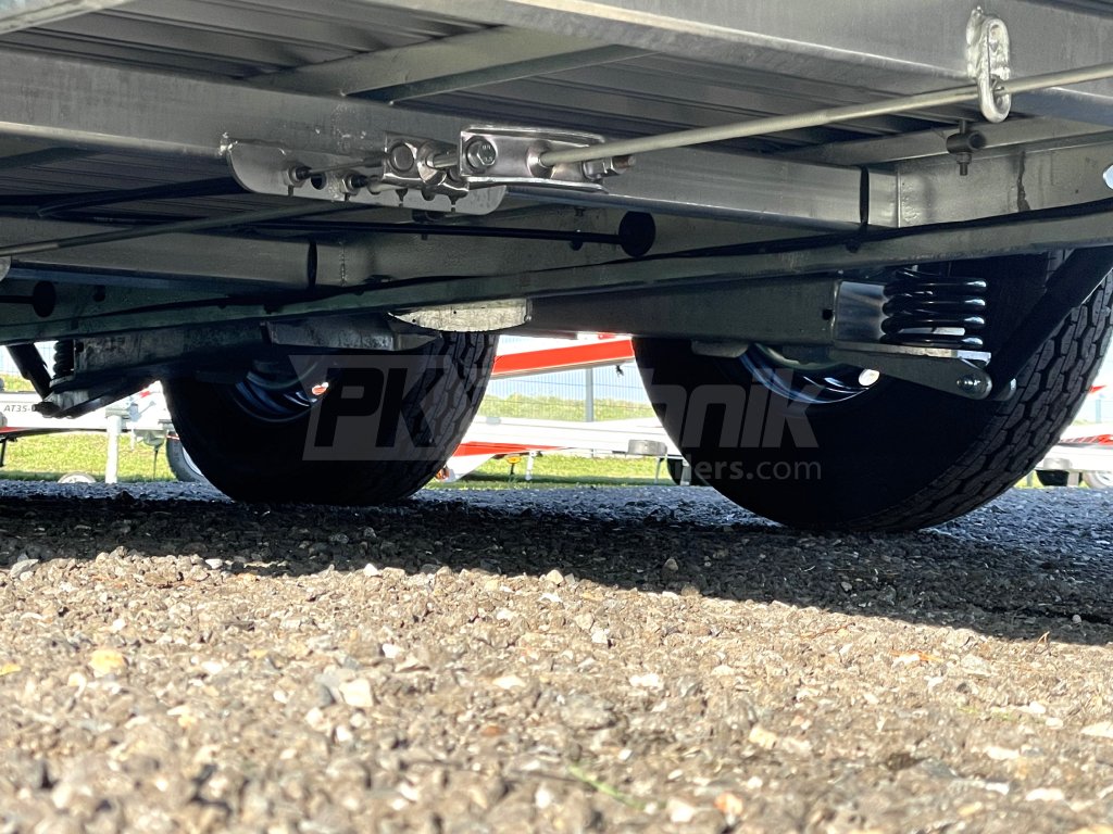 Rám přívěsu je ocelový, žárově zinkovaný. Bočnice přívěsu jsou vyrobeny z hliníkových dutých zámkových panelů o tloušťce 12 mm, které zaručují nízkou provozní hmotnost, velmi dlouhou životnost a v neposlední řadě také dokonalý design. Podlaha je celohliníková, protiskluzově perforovaná.