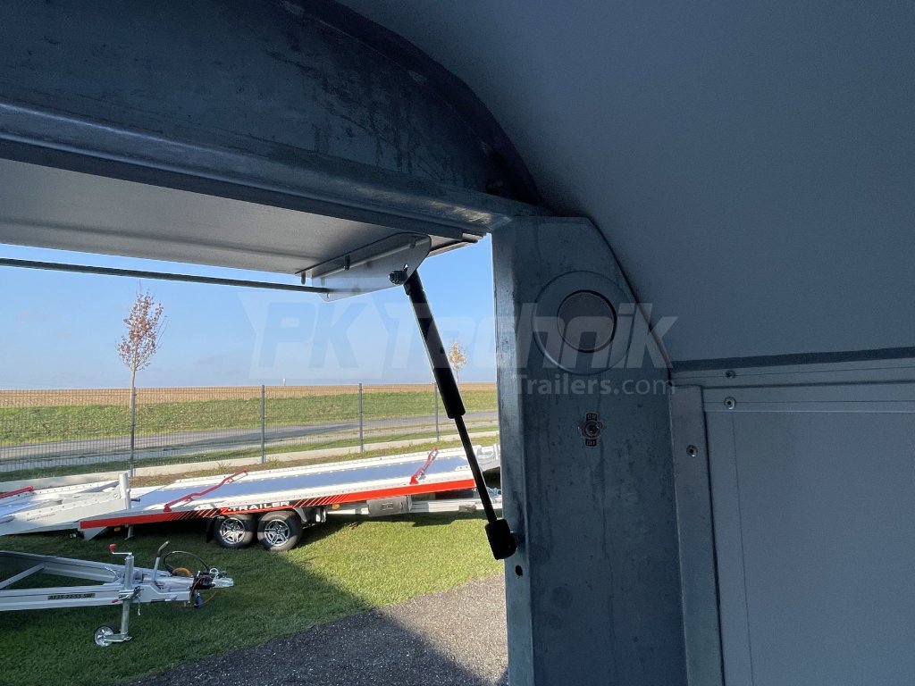 Přední a střešní část je vyrobena z monoblokového polyesteru (laminát) o tloušťce 8 mm. Oproti plachtovým přívěsům je tak zaručena dokonalá aerodynamika přívěsu, tuhost a ochrana nákladu před nečistotami a povětrnostními vlivy.