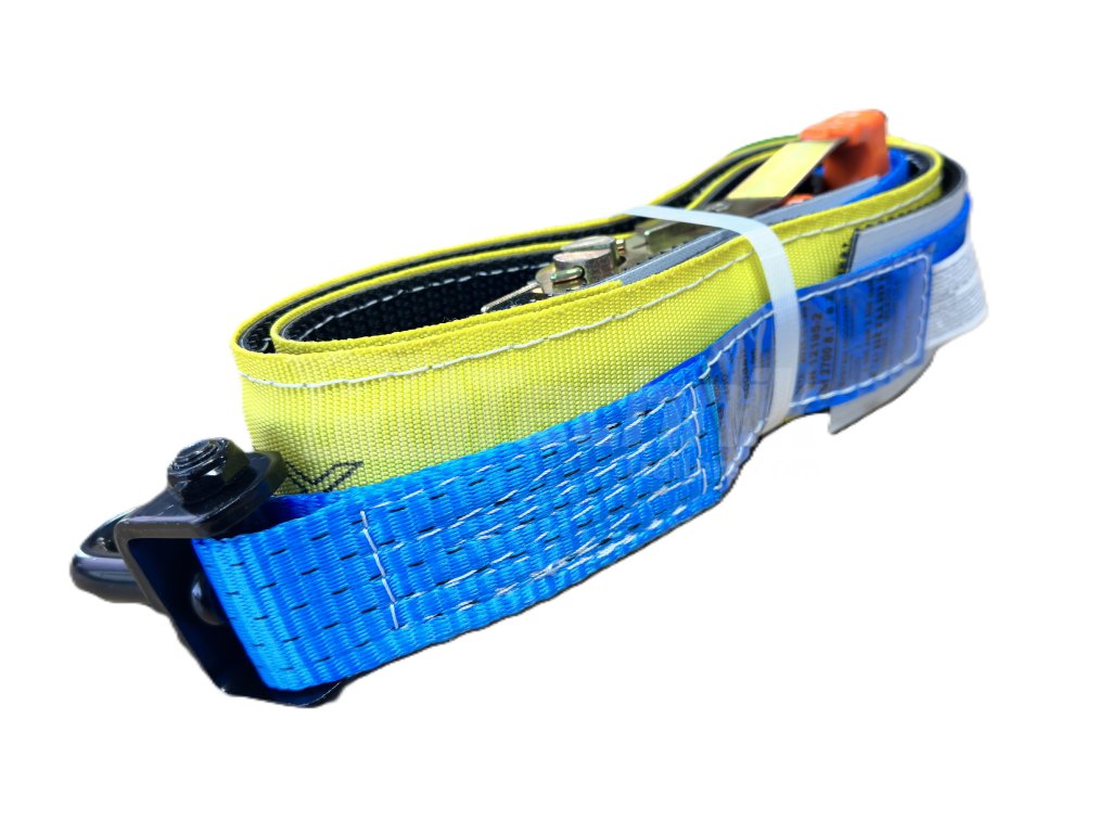 Upínací 3 bodový popruh vhodný pro transport vozidel, uchycení přes kolo, protiskluzová PVC vložka.