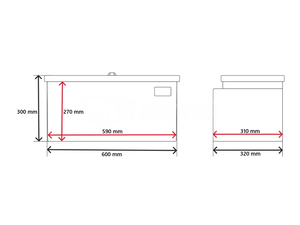 - Vnitřní rozměry: 590 x 270 x 310 mm