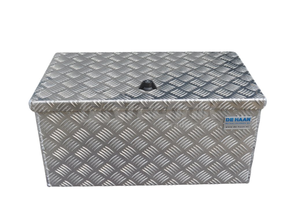 Hliníkový box na nářadí a příslušenství značky De Haan. Box je vysoce odolný proti mechanickému poškození a povětrnostním vlivům. De Haan Ecoline V se vyznačuje mimořádnou životností a odolností proti korozi. Rozměry boxu jsou 600 x 300 x 320 mm, čímž umožňuje dostatečný prostor pro uložení nářadí a příslušenství k přívěsu. Pro zvýšení bezpečnosti je box vybaven pevným zámkem, který zabrání nechtěnému otevření a chrání obsah boxu proti krádeži. Box De Haan je díky gumovému těsnění prachu i vodě odolný, tím zaručuje dlouhodobé používání i ve ztížených podmínkách a chrání tím příslušenství uložené v boxu.