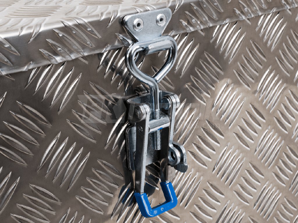 Hliníkový box na nářadí a příslušenství značky De Haan. Box je vysoce odolný proti mechanickému poškození a povětrnostním vlivům. De Haan Ecoline S se vyznačuje mimořádnou životností a odolností proti korozi. Pro zabezpečení hliníkového boxu De Haan Ecoline S je nutné zakoupit visací zámek. Rozměry boxu jsou 900 x 190 x 320 mm, čímž umožňuje dostatečný prostor pro uložení nářadí a příslušenství k přívěsu. Box De Haan je prachu i vodě odolný, což zaručuje dlouhodobé používání i ve ztížených podmínkách a chrání tím i nářadí a příslušenství uložené v boxu.